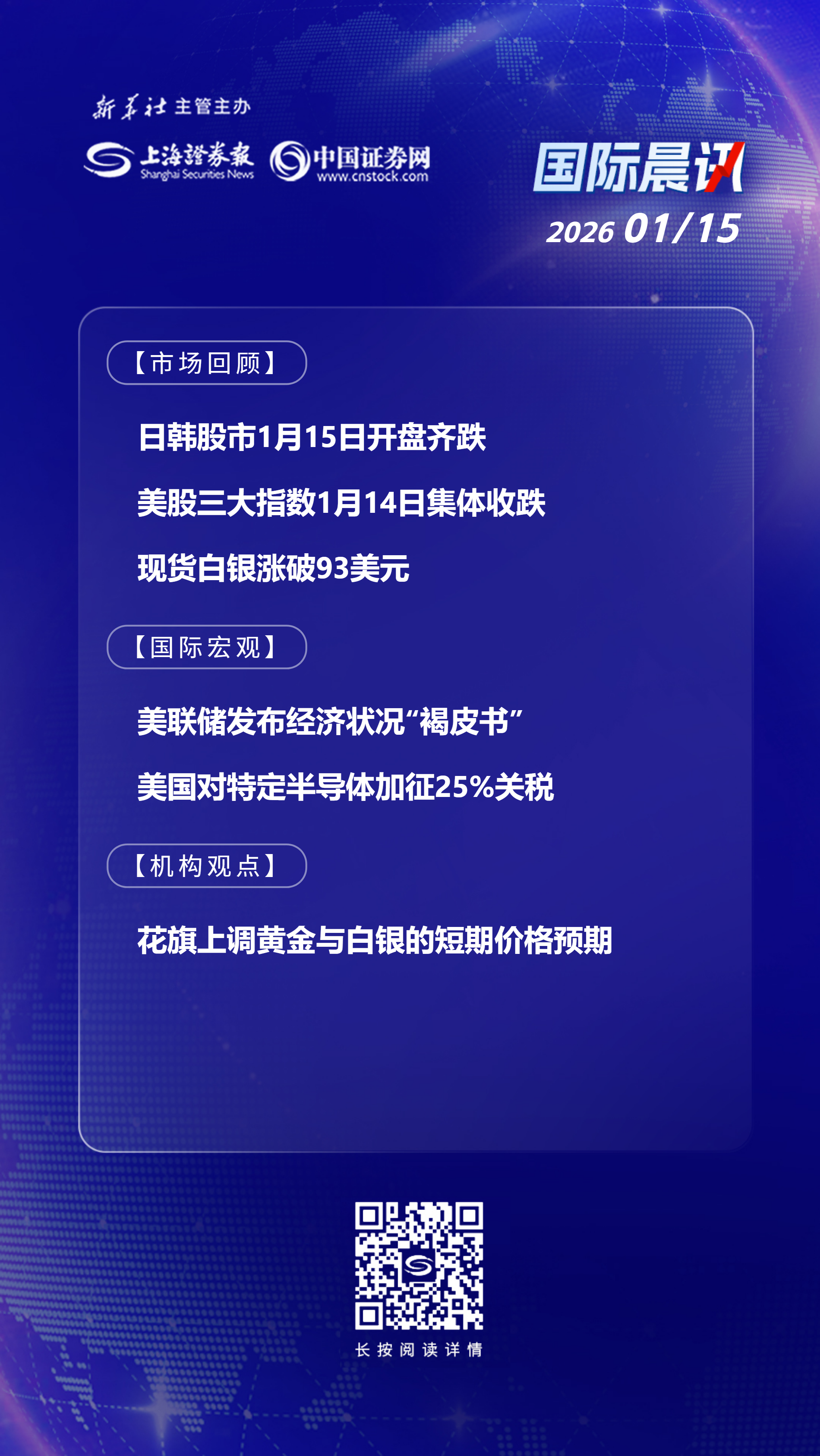金属价格延续近期的强劲涨势。其中,现货白银1月14日一度涨超7%,突破93美元关口,年内涨幅超28%。现货黄金(伦敦金现)同步刷新历史高位,达到4643美元/盎司。伴随着白银价格的走高,金银比跌破50,创下2012年以来的新低。1月15日开盘,现货黄金、现货白银均走低,其中现货黄金盘中失守4610美元/盎司,现货白银一度回落至92美元/盎司下方。