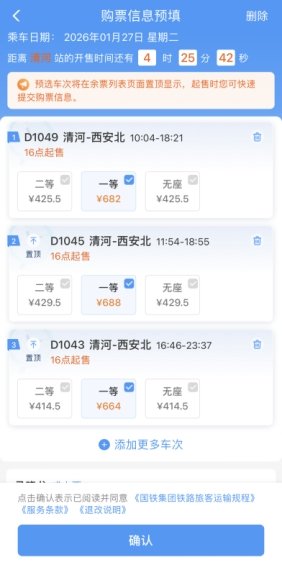 多个车次预填可一键抢