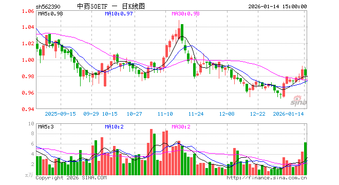 1月14日,中药50ETF(562390)跌0.81%,成交额620.38万元。当日份额增加200.00万份,最新份额为8142.90万份,近20个交易日份额增加300.00万份。最新资产净值计算值为7926.30万元。