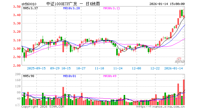 1月14日,中证1000ETF广发(560010)涨0.24%,成交额5.62亿元。当日份额减少3900.00万份,最新份额为114.01亿份,近20个交易日份额增加1.89亿份。最新资产净值计算值为387.13亿元。
