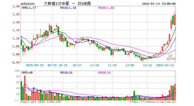 1月14日,大数据ETF华夏(516000)涨5.15%,成交额6870.45万元。当日份额增加1700.00万份,最新份额为3.21亿份,近20个交易日份额增加800.00万份。最新资产净值计算值为4.00亿元。