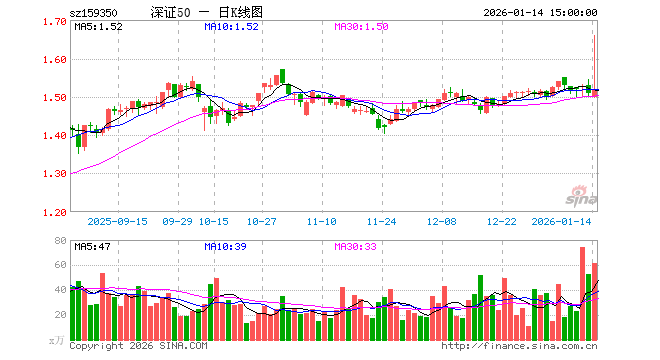 1月14日,深证50ETF富国(159350)涨0.46%,成交额9415.45万元。当日份额减少500.00万份,最新份额为2.09亿份,近20个交易日份额增加6000.00万份。最新资产净值计算值为3.16亿元。