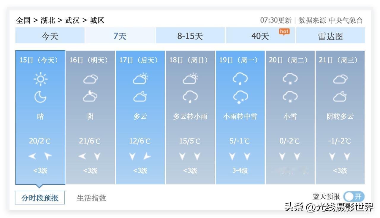 坐稳扶好!湖北省武汉市,即将从21度的高温夏天,跑步进入下雪的冰窟窿!1月19日和20日,武汉市,中雪,小雪,最高气温跌至0度……可是,1月16日,武汉市将会冲刺21度高温……最近几天,湖北省武汉市,街头巷尾,公园,江滩……不少人穿短袖逛……啊啊!感觉好像是初夏来了! 可是,超强冷空气即将南下,武汉即将被速冻,降温幅度高达20度……啊啊啊! 武汉最冷的时段即将来到! 四九,武汉好冷啊!