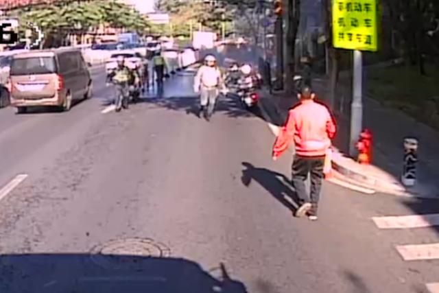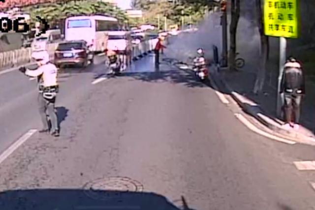 近日,广州公交集团下属巴士集团175线车长杨超在营运途中,偶遇路边三轮车货物起火。危急时刻,他沉着处置,主动携带车载灭火器与现场交警合力灭火,成功控制火势。