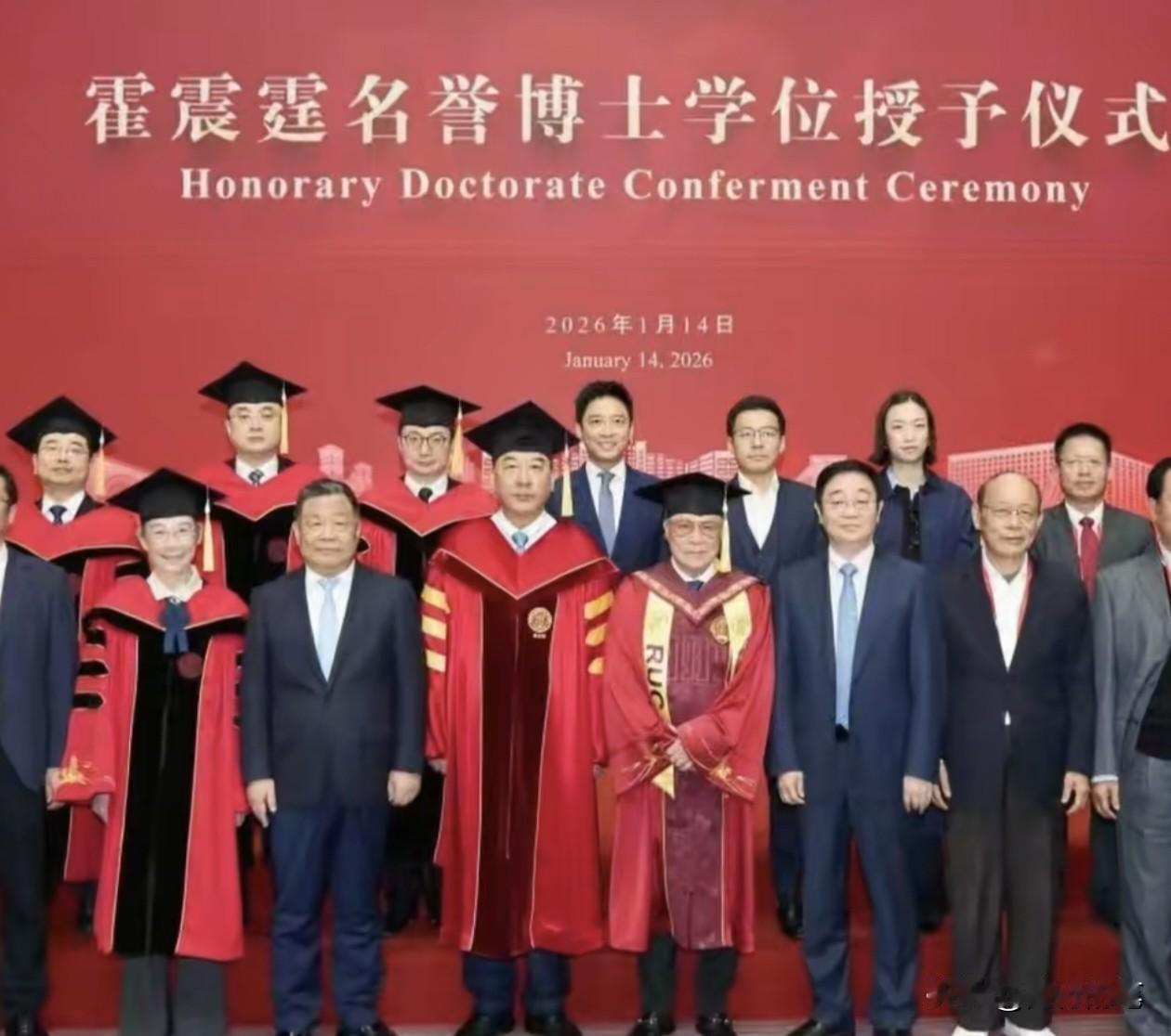 霍震霆获授中国人民大学法学荣誉博士,令人意外的是他和他家人的重视程度。 坦白说,对于霍震霆来说,现在已经79岁了,再加上家族显赫,虽然人民大学荣誉博士也是很重份量的荣誉,但对霍震霆来说这个其实也是名声比实际意义大而已,但是霍震霆却亲自出席,不仅穿着整套礼服,还发表演讲,整个仪式全程下来时间可不短,对于这年纪的老人家来说也相当耗精神体力的,足见他对此的重视程度。 另外,他的孩子霍启山、霍启仁与妻子都亲自出席,见证他父亲的重要时刻,如果不是因为重要会议时间冲突,霍启刚肯定也会出席,但霍启刚也不忘发文祝贺。要知道平时他们家人都是各有各的忙,这时候能够抽时间陪同霍震霆一起出席这个仪式,足见他们不仅重视这个荣誉,也体现他们一家的和睦关系。