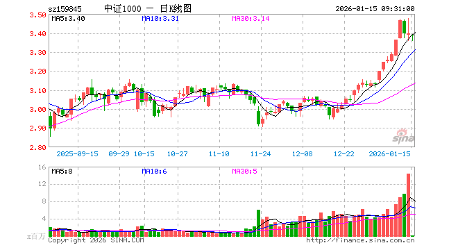 1月15日,中证1000ETF(159845)开盘跌0.29%,报3.387元。中证1000ETF(159845)重仓股方面,华虹公司开盘跌1.75%,和而泰跌1.15%,欧菲光涨0.54%,银轮股份跌1.42%,剑桥科技跌1.72%,方正科技跌0.33%,东芯股份跌0.50%,香农芯创跌2.82%,安集科技跌0.36%,源杰科技跌2.13%。