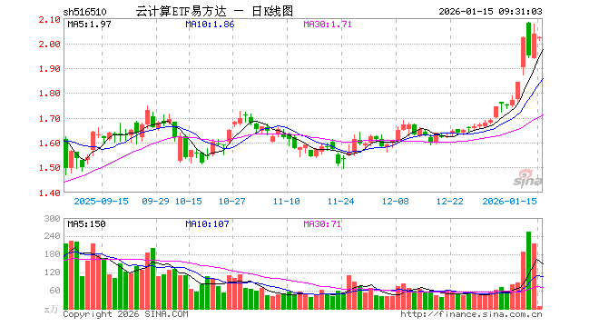 1月15日,云计算ETF易方达(516510)开盘跌0.93%,报2.019元。云计算ETF易方达(516510)重仓股方面,中际旭创开盘跌1.65%,新易盛跌0.99%,科大讯飞跌1.56%,中科曙光跌0.45%,浪潮信息涨0.37%,金山办公跌1.54%,紫光股份跌0.66%,恒生电子跌2.36%,润和软件涨1.69%,拓维信息涨4.82%。