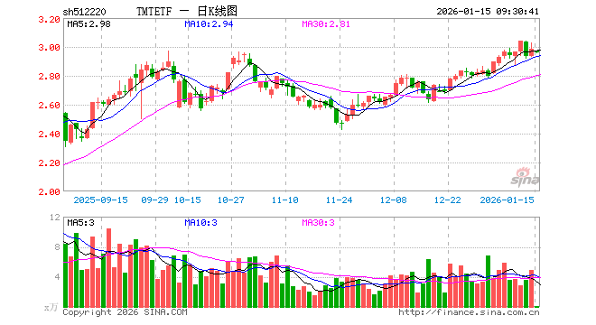 1月15日,TMTETF(512220)开盘跌0.60%,报2.969元。TMTETF(512220)重仓股方面,新易盛开盘跌0.99%,中际旭创跌1.65%,立讯精密跌0.45%,中芯国际跌0.80%,寒武纪跌1.26%,工业富联跌1.17%,海光信息涨0.99%,北方华创跌0.66%,澜起科技涨0.26%,胜宏科技跌1.39%。