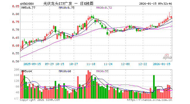 1月15日,光伏龙头ETF广发(560980)开盘跌1.28%,报0.772元。光伏龙头ETF广发(560980)重仓股方面,阳光电源开盘跌1.80%,特变电工跌2.35%,TCL科技跌0.81%,正泰电器跌0.67%,晶盛机电跌1.23%,德业股份跌0.84%,捷佳伟创跌0.67%,科华数据跌0.54%,锦浪科技跌0.52%,阿特斯跌2.07%。