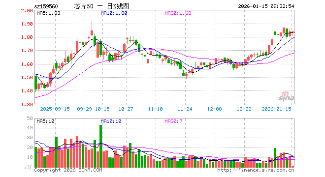 1月15日,芯片ETF景顺(159560)开盘跌0.38%,报1.830元。芯片ETF景顺(159560)重仓股方面,中芯国际开盘跌0.80%,寒武纪跌1.26%,海光信息涨0.99%,北方华创跌0.66%,澜起科技涨0.26%,兆易创新跌1.34%,中微公司跌0.84%,豪威集团跌0.07%,芯原股份涨0.85%,长电科技跌0.64%。