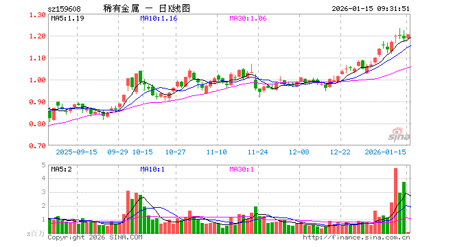 1月15日,稀有金属ETF(159608)开盘涨0.08%,报1.187元。稀有金属ETF(159608)重仓股方面,北方稀土开盘跌0.02%,洛阳钼业涨0.00%,华友钴业涨2.50%,盐湖股份跌1.32%,赣锋锂业跌0.38%,天齐锂业跌0.40%,中国稀土跌0.04%,中矿资源跌1.45%,盛和资源涨0.47%,西部超导跌2.56%。