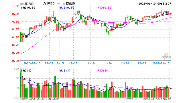 1月15日,双创50ETF(159782)开盘跌1.05%,报0.943元。双创50ETF(159782)重仓股方面,宁德时代开盘跌0.35%,新易盛跌0.99%,中际旭创跌1.65%,中芯国际跌0.80%,寒武纪跌1.26%,阳光电源跌1.80%,海光信息涨0.99%,澜起科技涨0.26%,胜宏科技跌1.39%,汇川技术跌0.08%。