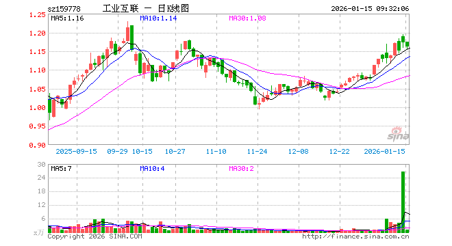 1月15日,工业互联ETF(159778)开盘涨0.17%,报1.174元。工业互联ETF(159778)重仓股方面,工业富联开盘跌1.17%,宁德时代跌0.35%,北方华创跌0.66%,兆易创新跌1.34%,汇川技术跌0.08%,豪威集团跌0.07%,科大讯飞跌1.56%,海康威视跌0.57%,亿纬锂能跌0.39%,比亚迪跌0.02%。