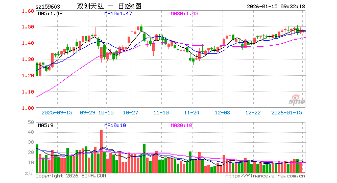 双创龙头ETF(159603)业绩比较基准为中证科创创业50指数收益率,管理人为天弘基金管理有限公司,基金经理为张戈,成立(2022-05-26)以来回报为47.73%,近一个月回报为3.52%。