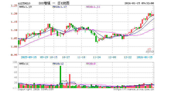 1月15日,500ETF增强(159610)开盘跌0.67%,报1.187元。500ETF增强(159610)重仓股方面,胜宏科技开盘跌1.39%,先导智能涨1.95%,中创智领跌0.46%,燕东微跌0.80%,国金证券跌0.21%,国睿科技跌0.94%,西部矿业跌0.20%,高德红外跌0.49%,中集集团涨0.00%,人福医药跌0.44%。