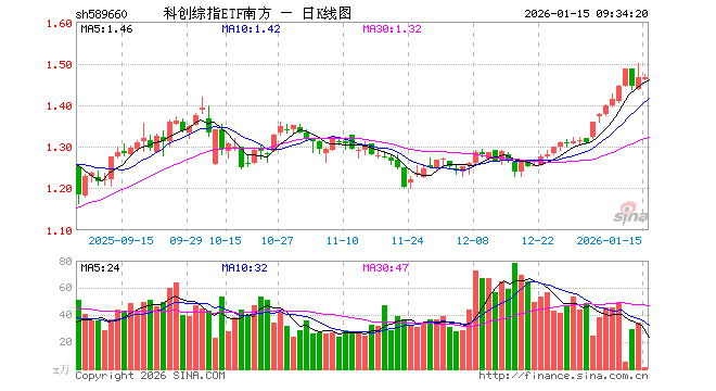 1月15日,科创综指ETF南方(589660)开盘跌0.34%,报1.460元。科创综指ETF南方(589660)重仓股方面,海光信息开盘涨0.99%,寒武纪跌1.26%,中芯国际跌0.80%,中微公司跌0.84%,澜起科技涨0.26%,百利天恒跌0.90%,金山办公跌1.54%,联影医疗涨0.01%,影石创新跌1.12%,传音控股涨0.00%。