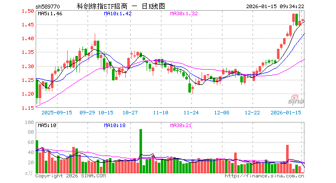 1月15日,科创综指ETF招商(589770)开盘涨0.00%,报1.461元。科创综指ETF招商(589770)重仓股方面,海光信息开盘涨0.99%,寒武纪跌1.26%,中芯国际跌0.80%,中微公司跌0.84%,澜起科技涨0.26%,百利天恒跌0.90%,金山办公跌1.54%,联影医疗涨0.01%,影石创新跌1.12%,传音控股涨0.00%。