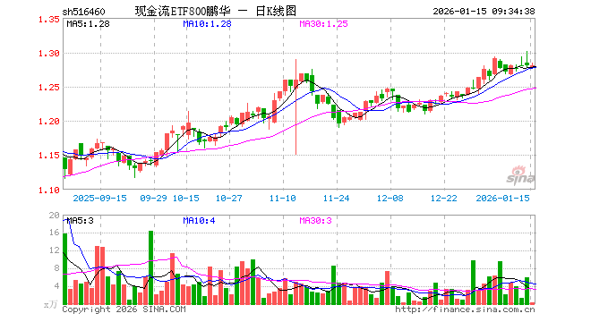 现金流ETF800(516460)业绩比较基准为中证800自由现金流指数收益率,管理人为鹏华基金管理有限公司,基金经理为寇斌权,成立(2025-04-17)以来回报为28.58%,近一个月回报为4.81%。