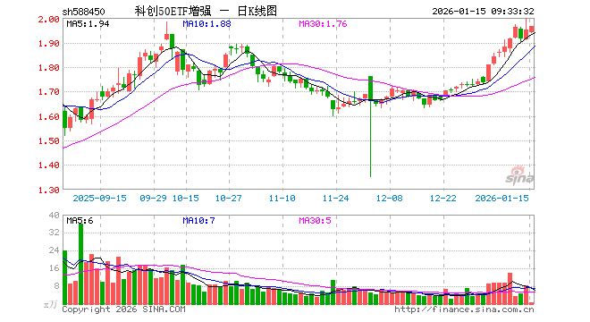 1月15日,科创50ETF增强(588450)开盘跌0.62%,报1.939元。科创50ETF增强(588450)重仓股方面,中芯国际开盘跌0.80%,寒武纪跌1.26%,澜起科技涨0.26%,海光信息涨0.99%,中微公司跌0.84%,联影医疗涨0.01%,金山办公跌1.54%,石头科技跌0.72%,晶晨股份跌0.68%,西部超导跌2.56%。
