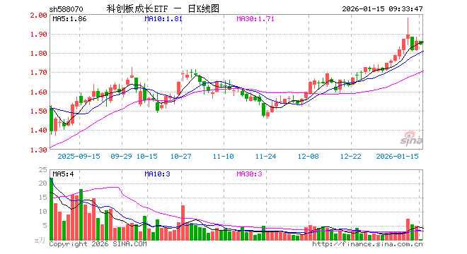 1月15日,科创板成长ETF(588070)开盘涨0.05%,报1.860元。科创板成长ETF(588070)重仓股方面,澜起科技开盘涨0.26%,寒武纪跌1.26%,九号公司跌0.13%,拓荆科技跌1.60%,思特威跌0.67%,源杰科技跌2.13%,中科飞测跌1.54%,仕佳光子跌0.61%,国盾量子跌2.48%,云天励飞跌0.93%。