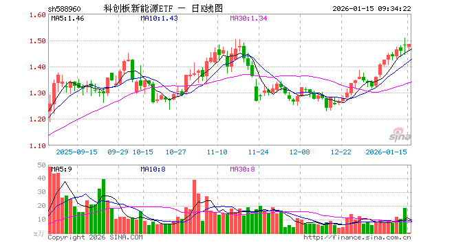 1月15日,科创板新能源ETF(588960)开盘跌0.41%,报1.474元。科创板新能源ETF(588960)重仓股方面,天合光能开盘涨0.78%,晶科能源跌0.97%,天奈科技涨0.37%,阿特斯跌2.07%,大全能源跌0.50%,厦钨新能涨0.02%,孚能科技涨1.12%,聚和材料跌1.61%,嘉元科技跌0.88%。