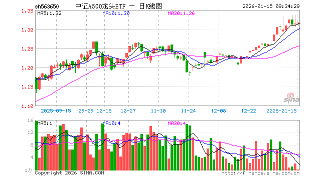 1月15日,中证A500龙头ETF(563650)开盘涨0.00%,报1.314元。中证A500龙头ETF(563650)重仓股方面,宁德时代开盘跌0.35%,贵州茅台跌0.14%,中国平安跌0.15%,紫金矿业跌0.62%,招商银行涨0.10%,新易盛跌0.99%,美的集团涨0.40%,海光信息涨0.99%,东方财富跌2.06%,立讯精密跌0.45%。