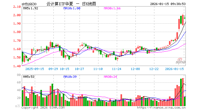 1月15日,云计算ETF华夏(516630)开盘跌1.55%,报1.964元。云计算ETF华夏(516630)重仓股方面,中际旭创开盘跌1.65%,新易盛跌0.99%,科大讯飞跌1.56%,中科曙光跌0.45%,浪潮信息涨0.37%,金山办公跌1.54%,紫光股份跌0.66%,恒生电子跌2.36%,润和软件涨1.69%,拓维信息涨4.82%。