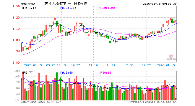 1月15日,芯片龙头ETF(516640)开盘涨0.09%,报1.168元。芯片龙头ETF(516640)重仓股方面,中芯国际开盘跌0.80%,寒武纪跌1.26%,海光信息涨0.99%,北方华创跌0.66%,澜起科技涨0.26%,兆易创新跌1.34%,中微公司跌0.84%,豪威集团跌0.07%,芯原股份涨0.85%,长电科技跌0.64%。