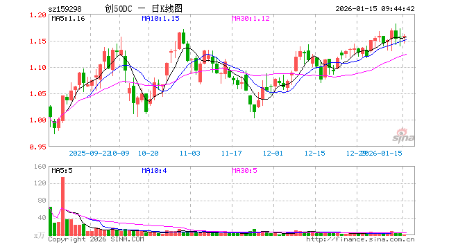 1月15日,创业板50ETF大成(159298)开盘涨0.00%,报1.155元。创业板50ETF大成(159298)重仓股方面,宁德时代开盘跌0.35%,东方财富跌2.06%,新易盛跌0.99%,中际旭创跌1.65%,胜宏科技跌1.39%,汇川技术跌0.08%,阳光电源跌1.80%,迈瑞医疗跌0.49%,天孚通信跌1.04%,同花顺跌2.14%。