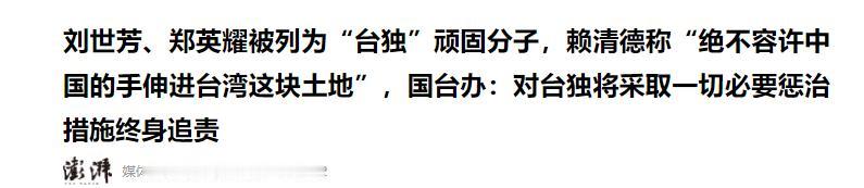 “台独”顽固分子名单更新!吕秀莲已改口,民进党终于开始慌了 民进党元老吕秀莲刚说,两岸和平要靠“当权者不要乱搞”。话音未落,北京一份新名单就把“乱搞”的责任直接砸到了具体的人头上。 民进党元老吕秀莲刚讲完“当权者不要乱搞”,北京一份新的“台独”顽固分子名单就来了,直接点名谁在“乱搞”。 这次的名单,重要是背后的玩法变了。过去,两岸之间更多是隔空喊话,讲的是大道理。 现在,北京开始点名到人,追究具体责任。这一下,压力就从对岸,传导进了台湾内部。 国台办的说法也很有意思,他们特地提到,惩戒的依据里,包含了“许多民众的举报”。这么一来,一个政治决定,就披上了一层回应民意的色彩。 我们来看看新增的两个人。一位是刘世芳,她的职责范围是户籍和治安,管的是社会秩序的螺丝钉。 北京对她的指控非常具体,刻意阻挠两岸交流,给大陆籍配偶在台生活制造麻烦。 另一位郑英耀,是管教育和文化的,影响的是台湾下一代人怎么想。对他的指控更要害,直指他推动在教科书里加入“台独”分裂的内容。 民进党当局的回应,还是老一套。陆委会照例批评对岸,说这么做会“激怒台湾人民”。但“外部威胁”这张牌,这次好像没那么好用了。 因为岛内,已经有了不一样的声音。吕秀莲的表态就是个风向标,她曾经是绿营的标志性人物,现在却公开说“两岸同属中华民族”,把问题归结为“当权者”。 这种话从她嘴里说出来,等于直接戳破了“全民一致抗中”的说法。 这就带出了一个核心问题:陆委会说制裁会引发“台湾人民反感”,那么,大家反感的到底是什么?是北京开出的这份名单,还是名单上那些官员被指控的具体行为? 北京的惩戒措施都摆在台面上,禁止刘世芳、郑英耀等人进入大陆及港澳地区,并且终身追责。 这套办法,就是要让他们个人感受到实实在在的政治成本,让有争议的政策在执行层面卡住。 当然,吕秀莲这样的人讲话,虽然不会触犯法律,但在党内却可能面临路线问题的压力。民进党越是需要用外部压力来团结内部,就越是容不下不同的声音。 所以,这份名单真正的看点,是北京正在尝试建立一套新的规则。它是巧妙地放大了台湾内部本就存在的分歧和不满,把压力变成了台湾内部的议题。 这对民进党当局来说,確實是个头疼的问题。如果无视名单背后的具体指控,可能会被批评不接地气。如果激烈反击,又等于把自己和那些争议政策捆得更死。 台湾内部的政治天平,会不会因此被慢慢撬动,这才是接下来值得我们每个人观察的。 信息来源:《刘世芳、郑英耀被列为“台独”顽固分子,赖清德称“绝不容许中国的手伸进台湾这块土地”,国台办:对台独将采取一切必要惩治措施终身追责》,红星新闻,2026年1月14日。