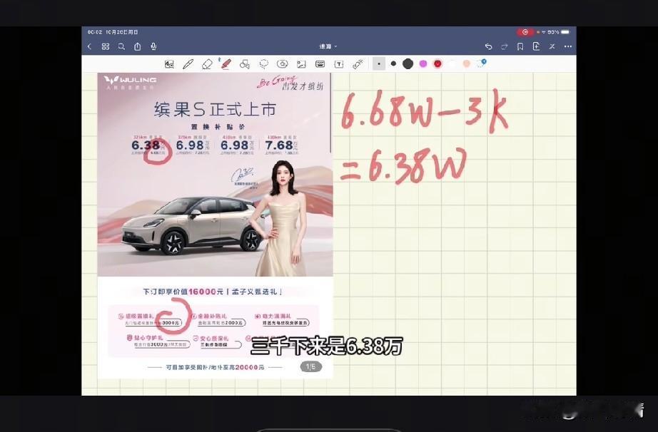 女子买了一辆宾果S325续航尊贵版, 新车的大灯非常的闪亮, 外表看起来非常的有动感, 因为她家的路不好, 她买车的时候就想要一个底盘高, 于是她就选择了宾馆S325尊享版, 这辆车他看着外观就比较小, 关键是价格还非常优惠, 官方指导价6.68万减去优惠的3000元, 最后就花了6.38万, 保险选的是阳光保险,不到2000块钱 总共就花了6.58万, 没想到这么便宜就拿下了宾果s 店里面也送了三年质保, 让她挺开心的, 毕竟凭借自己的努力买的车, 怎么看怎么喜欢? 大家觉得6万多买一辆宾果s值不值?