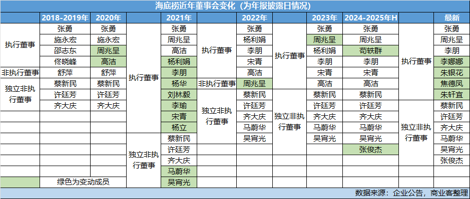 多年来,海底捞的管理风格十分务实,管理层干不好就换人是常见的事。自2019年至今,海底捞董事会几乎每年都会出现人员变动。