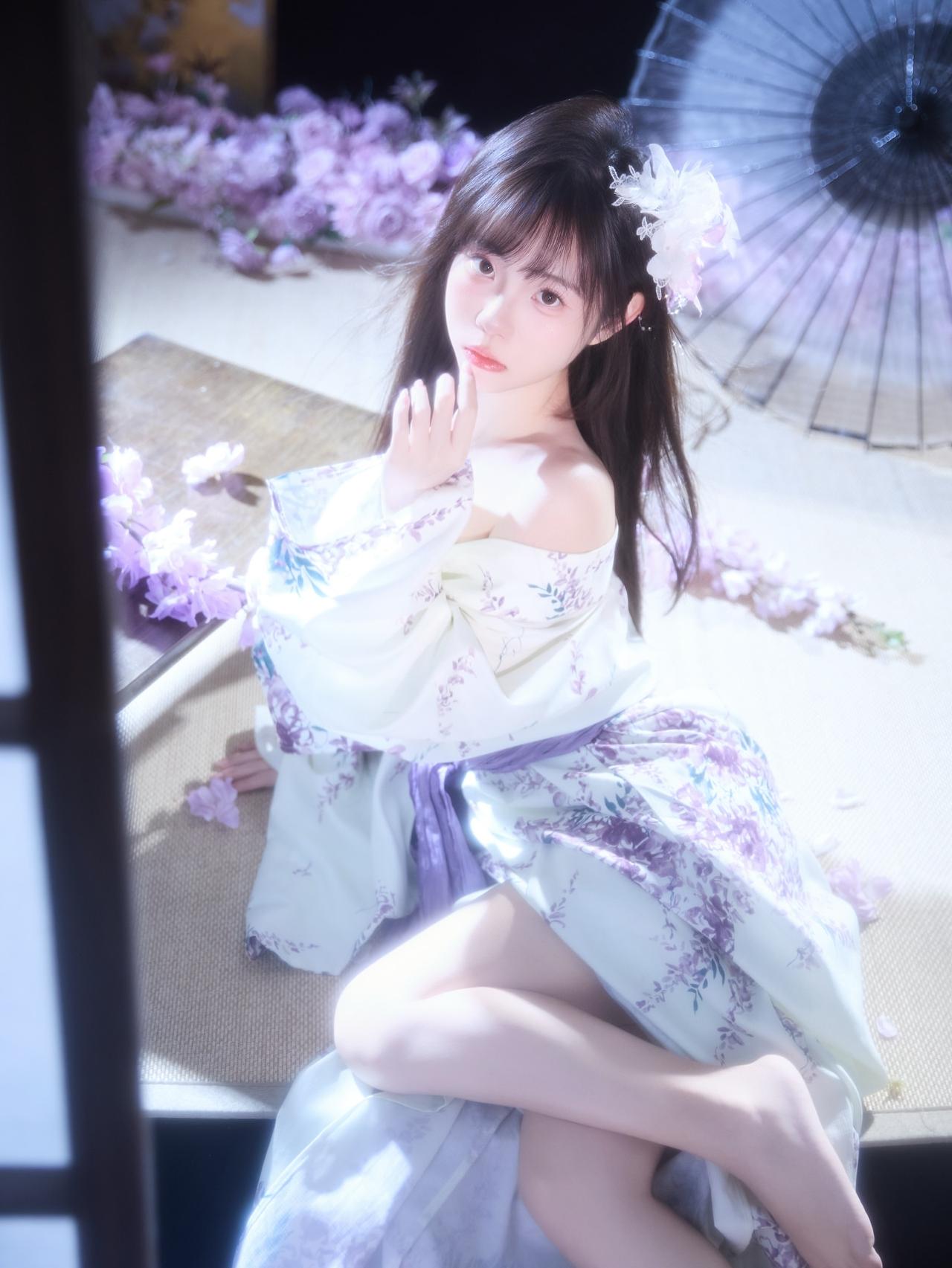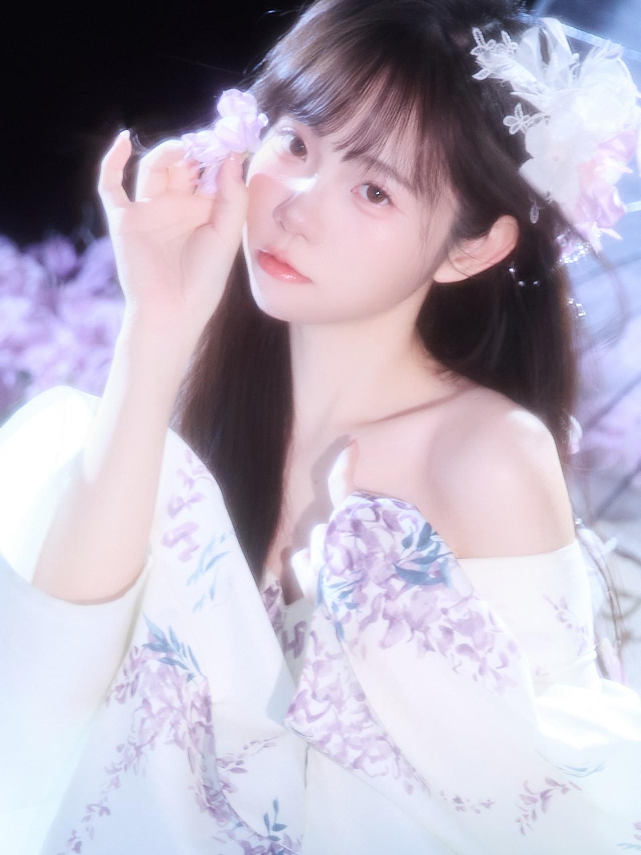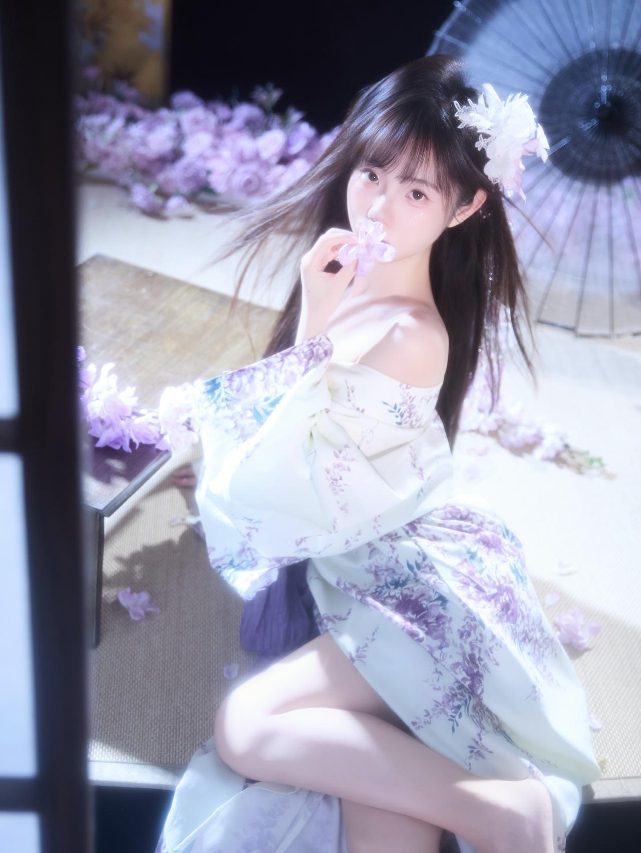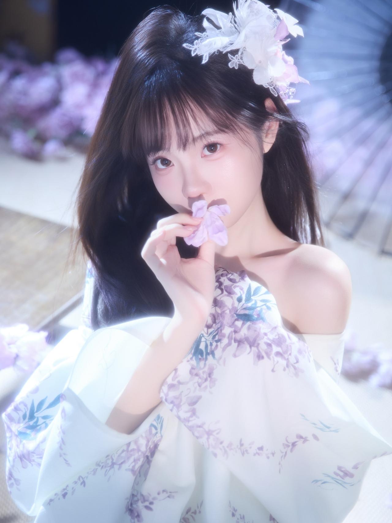 花影摇曳间,美人倚窗立。窗前花影 娇容花影 紫裙花影