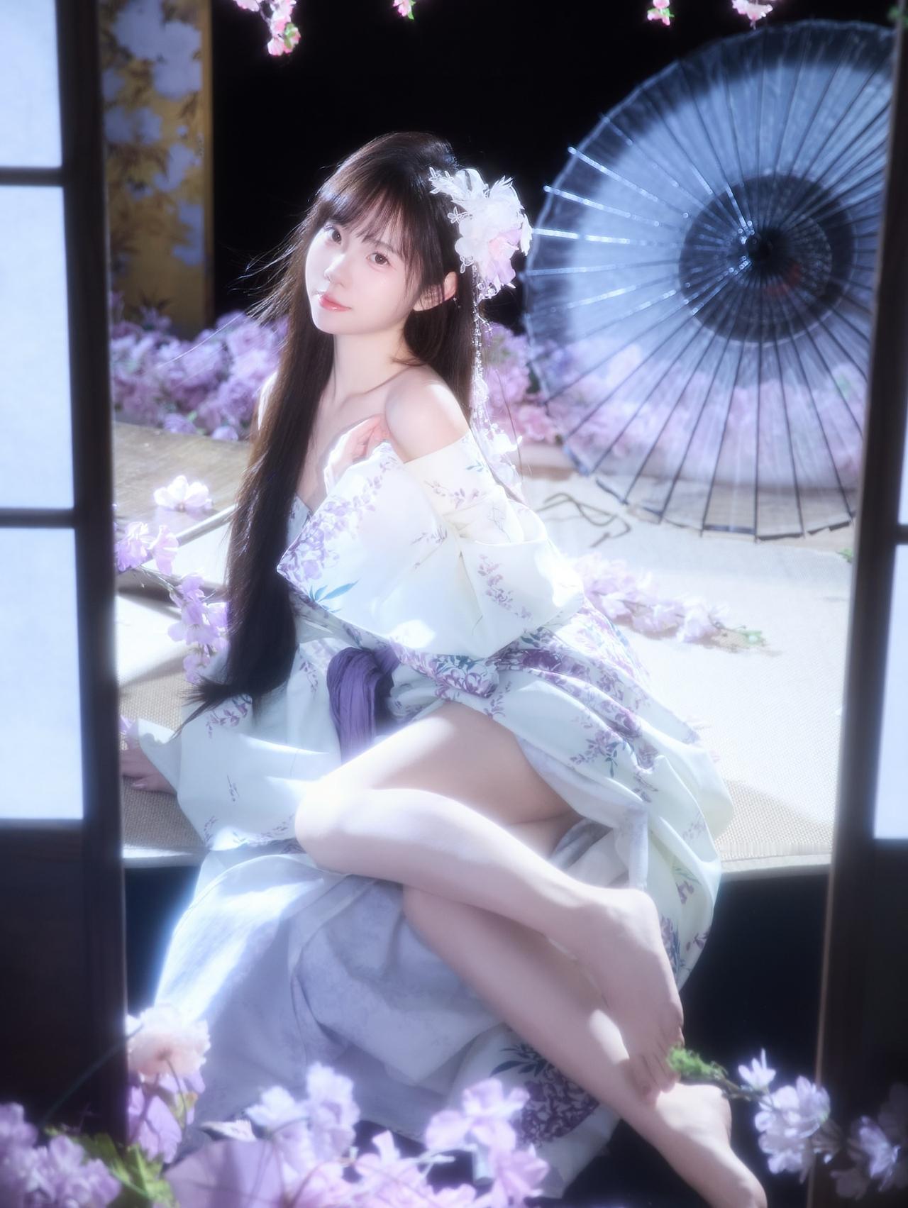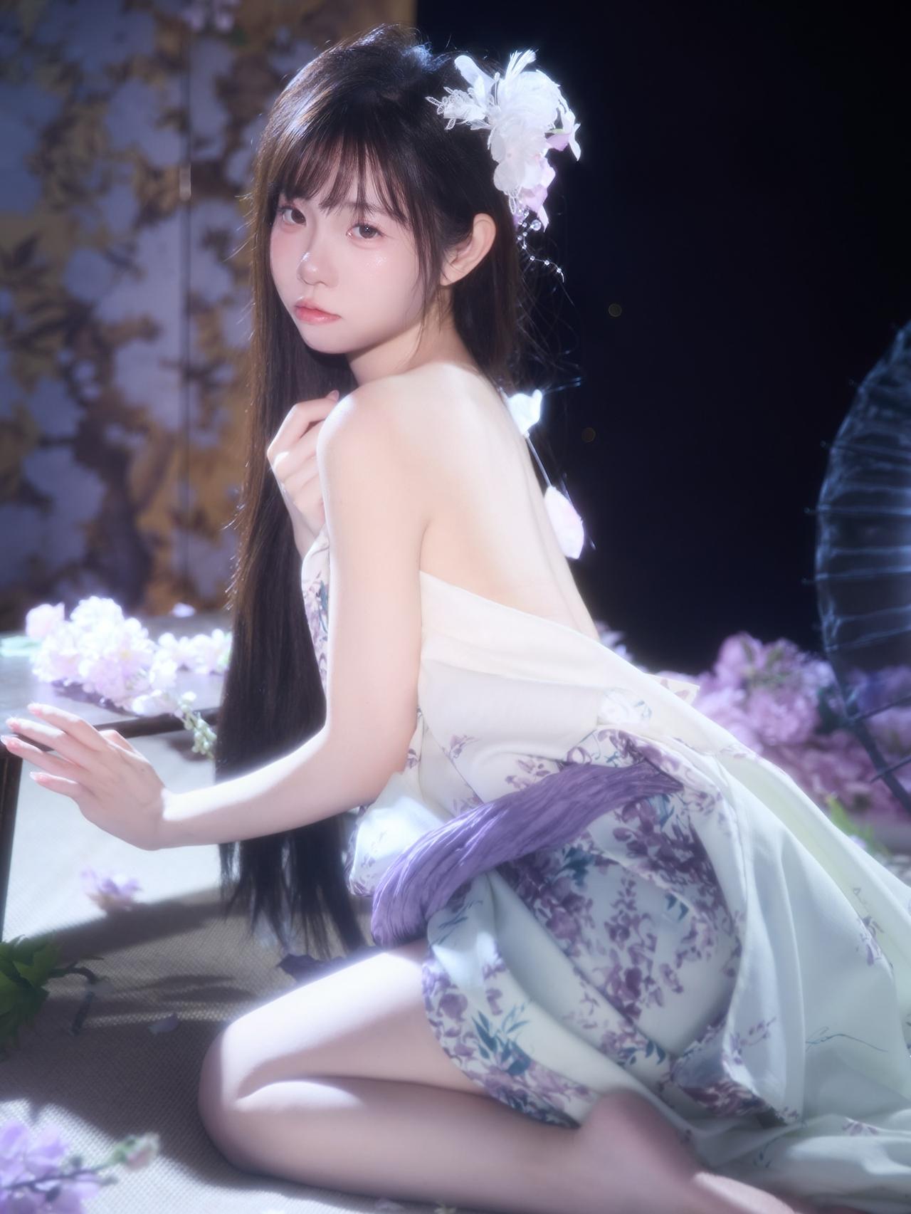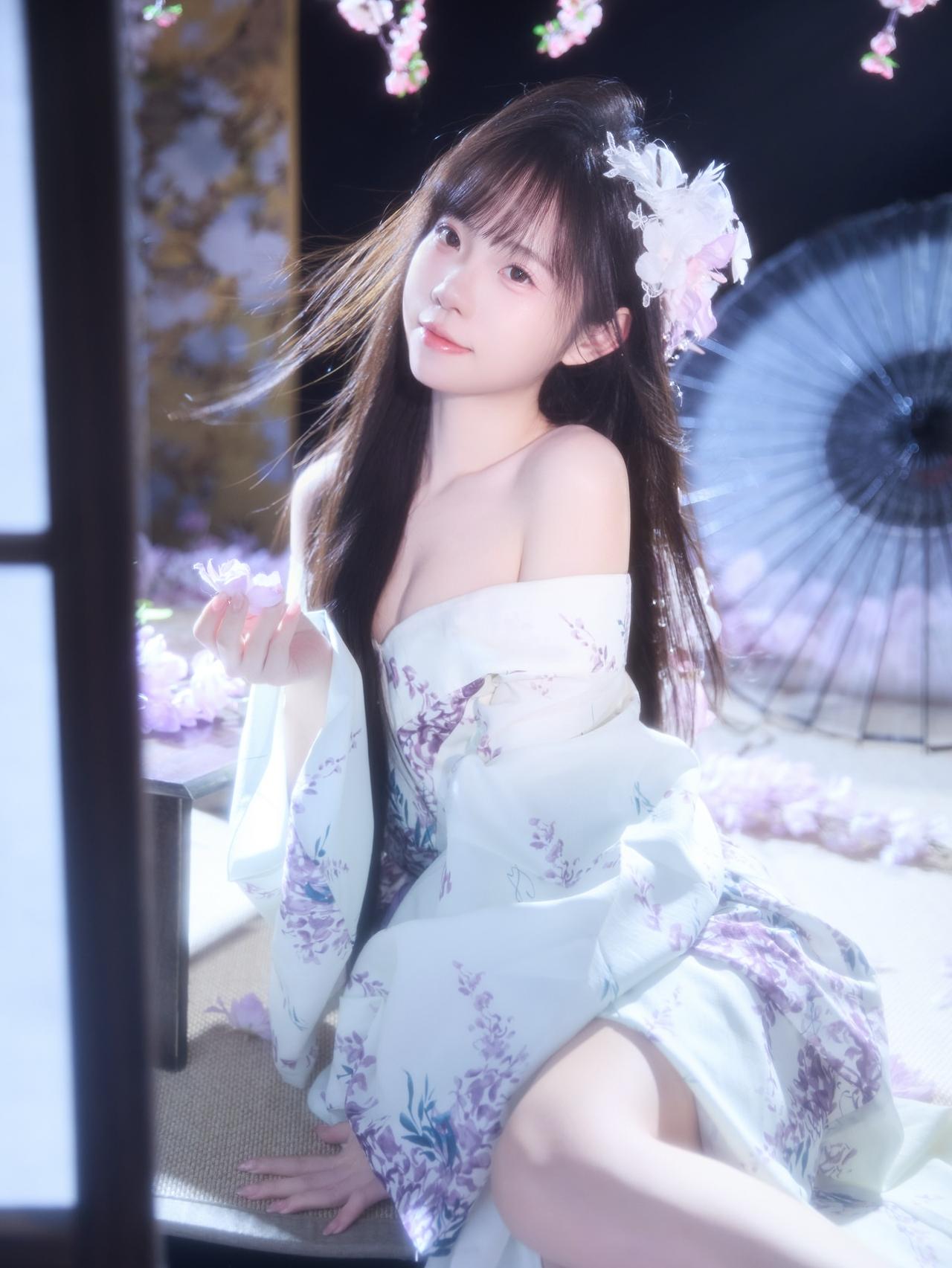 花影摇曳间,美人倚窗立。窗前花影 娇容花影 紫裙花影