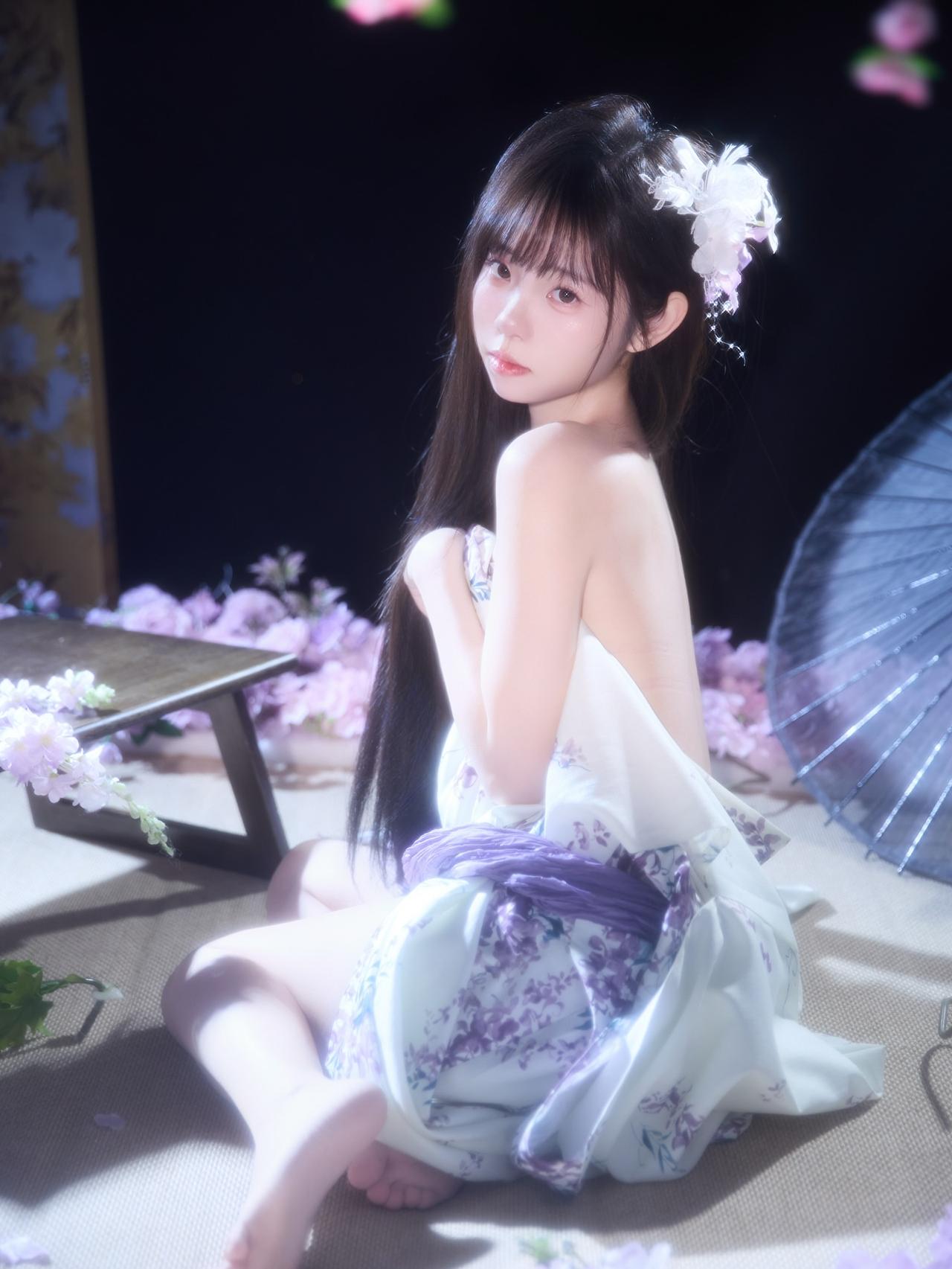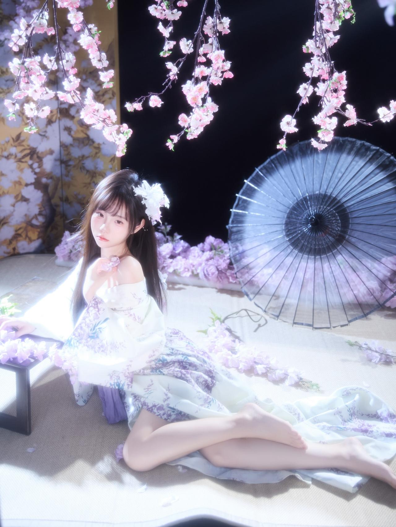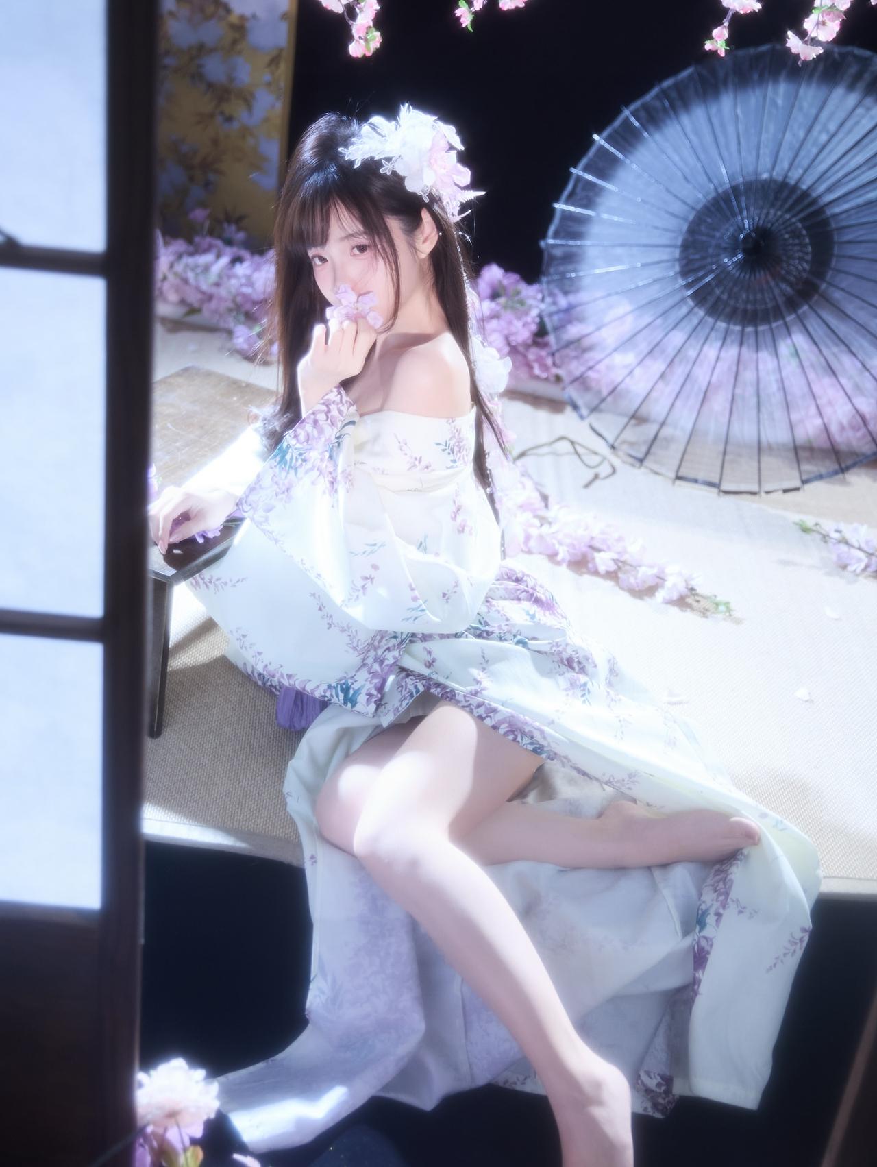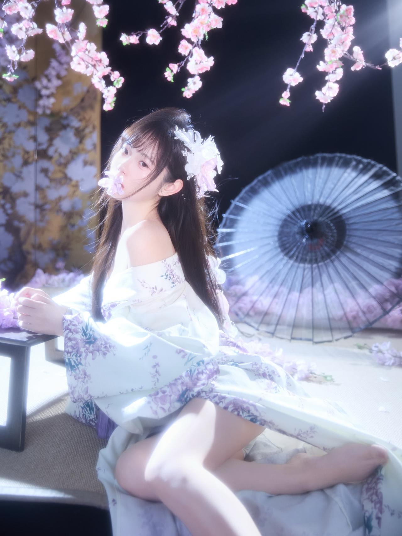 花影摇曳间,美人倚窗立。窗前花影 娇容花影 紫裙花影