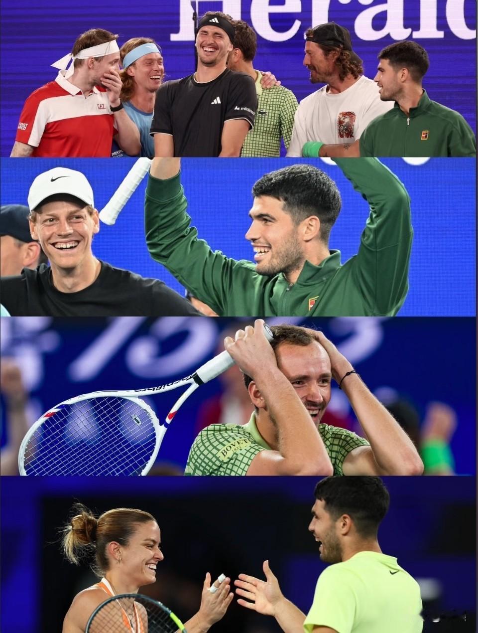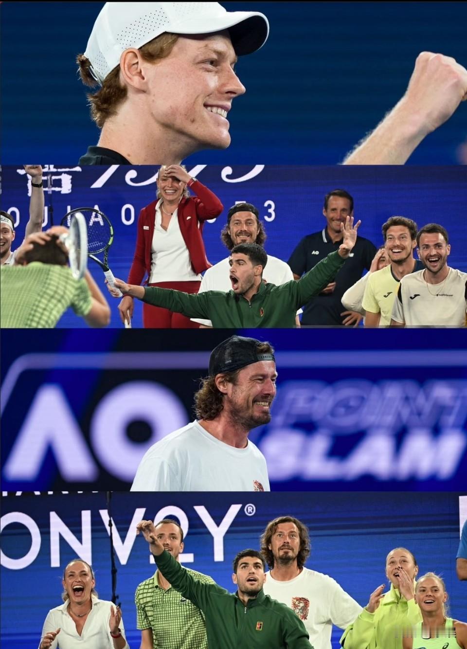 所有人都笑到停不下来的澳网一球制胜😁 我第一次看網球賽,有個問號是,他們為什麼都笑得那麼好看,平時也是這樣的嗎?每個人笑起來都像太陽一樣!哈哈 也许这场比赛娱乐性质的,大家重在参与,没什么压力,所以很开心~🥳澳网赛事 澳网网球