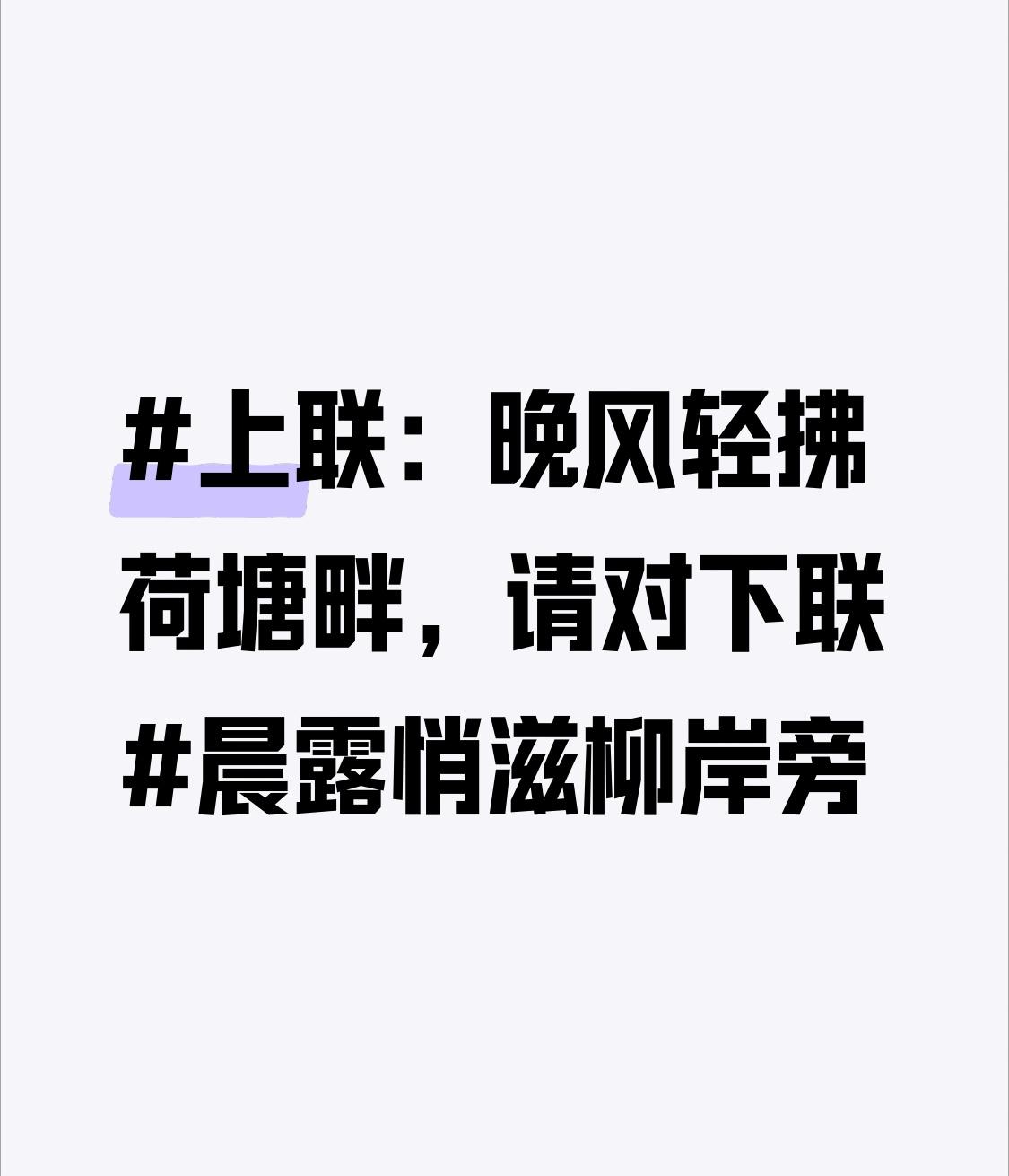 上联:晚风轻拂荷塘畔,请对下联晨露悄滋柳岸旁