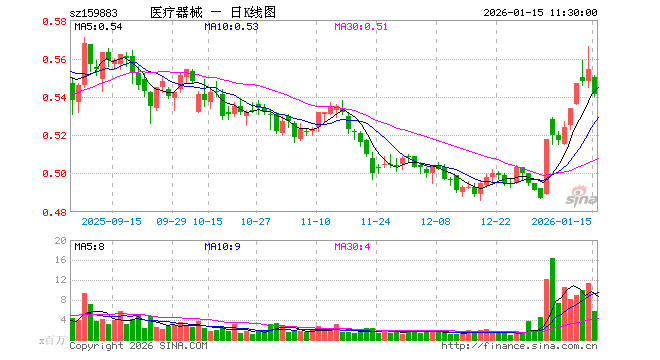 1月15日,截止午间收盘,医疗器械ETF(159883)跌2.35%,报0.541元,成交额3.11亿元。医疗器械ETF(159883)重仓股方面,迈瑞医疗截止午盘跌1.89%,联影医疗跌3.43%,爱美客跌1.92%,新产业跌1.56%,惠泰医疗跌1.10%,鱼跃医疗跌5.66%,乐普医疗跌2.96%,福瑞股份跌1.54%,英科医疗涨1.35%,山东药玻涨1.24%。