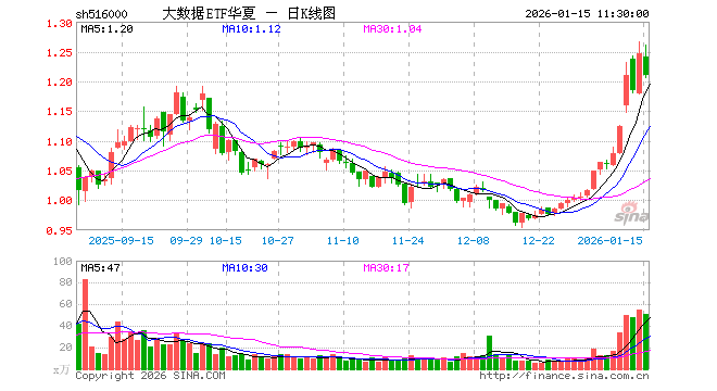 1月15日,截止午间收盘,大数据ETF华夏(516000)跌2.89%,报1.210元,成交额6375.65万元。大数据ETF华夏(516000)重仓股方面,中科曙光截止午盘跌1.37%,科大讯飞涨1.52%,浪潮信息跌2.57%,紫光股份跌1.62%,恒生电子跌2.65%,拓维信息跌0.48%,润泽科技跌9.48%,中国长城跌2.21%,用友网络跌8.84%,深信服涨2.50%。