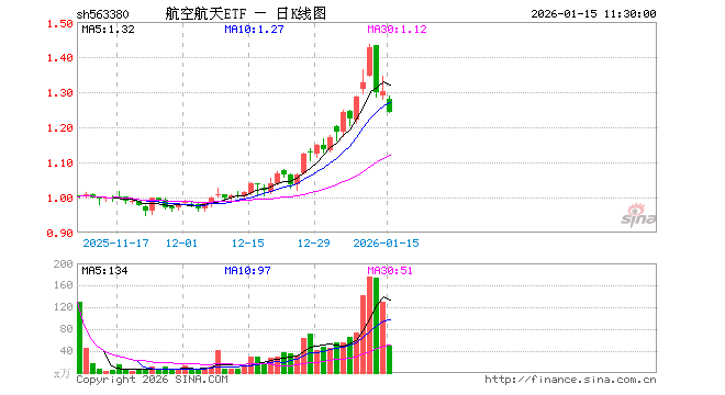 航空航天ETF(563380)业绩比较基准为中证全指航空航天指数收益率,管理人为华泰柏瑞基金管理有限公司,基金经理为谭弘翔,成立(2025-10-29)以来回报为30.19%,近一个月回报为28.32%。
