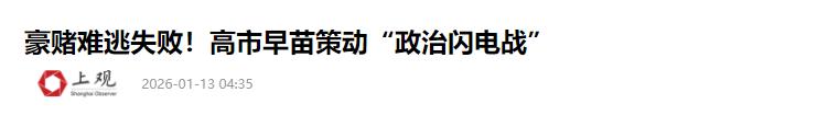 日本不怕中国制裁,不怕经济下滑,不怕航班取消,不怕拉走熊猫,不怕旅游业萧条,不怕水产业萎靡不振。那日本怕什么?就怕美国不上当。中方禁止对日出口两用物资后,日本以后只能去找美国买,美国又稳稳的躺赢了,怪不得美国这段时间不吱声   高市早苗政府的计划,从纸面上看,似乎很清晰。在台湾等问题上不断对中国施加压力,主动制造紧张局势,以此迫使美国不得不更深地介入,巩固美日军事同盟。   她想要的,是一场烈度可控的对峙,最终由美国下场调停,日本则以“胜利者”的姿态收场。   但问题是,她算错了对手的反应。面对挑衅,北京没有选择军事回应,而是直接动用了经济手段。这一下,正好打在了日本最难受的地方。   2026年1月6日,中国商务部发布公告,对部分可用于军事的物资和技术实行出口管制。   这道禁令来得又快又准,日本最先进的武器制造和半导体生产,都严重依赖从中国进口的重稀土等关键材料。这一招,直接掐住了日本高科技产业的要害。   仅仅一天之后,中国宣布对从日本进口的二氯二氢硅进行反倾销调查。这是半导体产业的上游材料,日本的相关企业再次受到冲击。   然而,真正让高市早苗和整个内阁感到措手不及的,是来自华盛顿的沉默。   美国需要的是一个强硬但绝对听话的日本,一个在前线扮演好自己角色的盟友。但一个可能随时将美国拖入非必要冲突的日本,就从“资产”变成了“负债”。   高市早苗的行为,显然越界了。甚至有消息传出,特朗普亲自打电话给高市,非常直白地告诉她,她的路线“太激进了”。   其实,华盛顿的沉默背后,是现实利益计算。中国对日本进行出口管制,客观上给美国公司让出了市场。   日本企业焦头烂额地在全球寻找替代供应商,美国的同类产品和技术正好可以卖给日本,而且价格绝不会便宜。   1月11日,美国财长贝森特在华盛顿开了一场“关键矿产供应链会议”,名义上是帮助盟友,实际上是在构建一个由美国主导、将中国排除在外的供应链新体系。而日本,将是这个体系的第一个付费用户,并且账单会相当昂贵。   这股寒意,迅速从产业界传导到了日本社会的每个角落。中日之间46条客运航线全部暂停,原本被寄予厚望的中国春节旅游黄金周,彻底泡汤。   无数旅馆、商店和景点,生意一落千丈。曾经是日本最大海外市场的水产品,对华出口额断崖式下跌92.3%,几乎归零。   经济上的巨大压力,很快转变成了政治风暴。在闭门会议上,丰田、索尼这些行业巨头向政府表达的,是对供应链安全的极度忧虑。   一向与政府立场一致的经济团体“经团联”,也罕见地公开喊话,呼吁中方保持克制,但话里话外的意思,是希望本国政府不要再让局势恶化。   东京街头,抗议者举起了“高市早苗是战争首相”的标语。连歌手七尾旅人都公开批评,说政府的政策正在破坏地区的和平。   甚至,作为中日友谊象征的大熊猫,也因为续租谈判暂停,随时可能要被送回中国。   高市早苗设想的“反华联盟”,更是没人响应。韩国总统李在明刚刚结束访华,带回了24份出口大单。   法国总统马克龙公开强调,七国集团不应该成为一个“反华俱乐部”。中亚五国在资源出口问题上也十分谨慎,不愿在中日争端中轻易站队。   现在,高市早苗政府发现自己被困住了。往前走,是持续的经济失血和国内日益沸腾的民怨。往后退,则意味着政治上的彻底失败,她个人的政治信誉也将随之崩塌。   这一幕,和1956年的苏伊士运河危机何其相似。当时的英法两国,没有得到美国的首肯就贸然出兵埃及,结果遭到了华盛顿的强力施压,最后只能灰溜溜地撤军,国家声望一落千丈。   显然,一个国家把自己的命运,赌在另一个大国模糊不清的承诺上时,一次错误的判断就足以带来灾难。   信息来源:《豪赌难逃失败!高市早苗策动“政治闪电战”》,上观新闻,2026年1月13日。