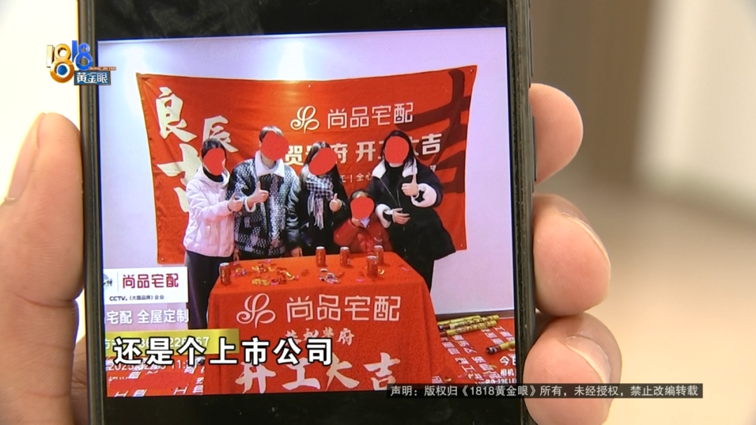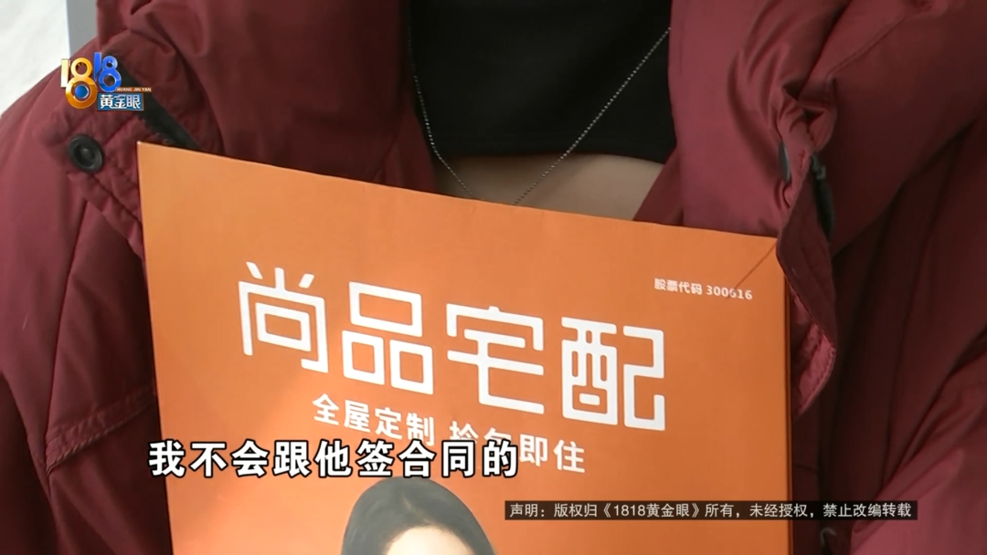 余女士的弟媳妇:都没有。说是45天柜子给我拿到,但是45天时间到了以后,他们还是没有来,他们约我的时候就跟我说了,他们账面上没有流动资金了,资金链断了,我们这边没有可能装下去了。