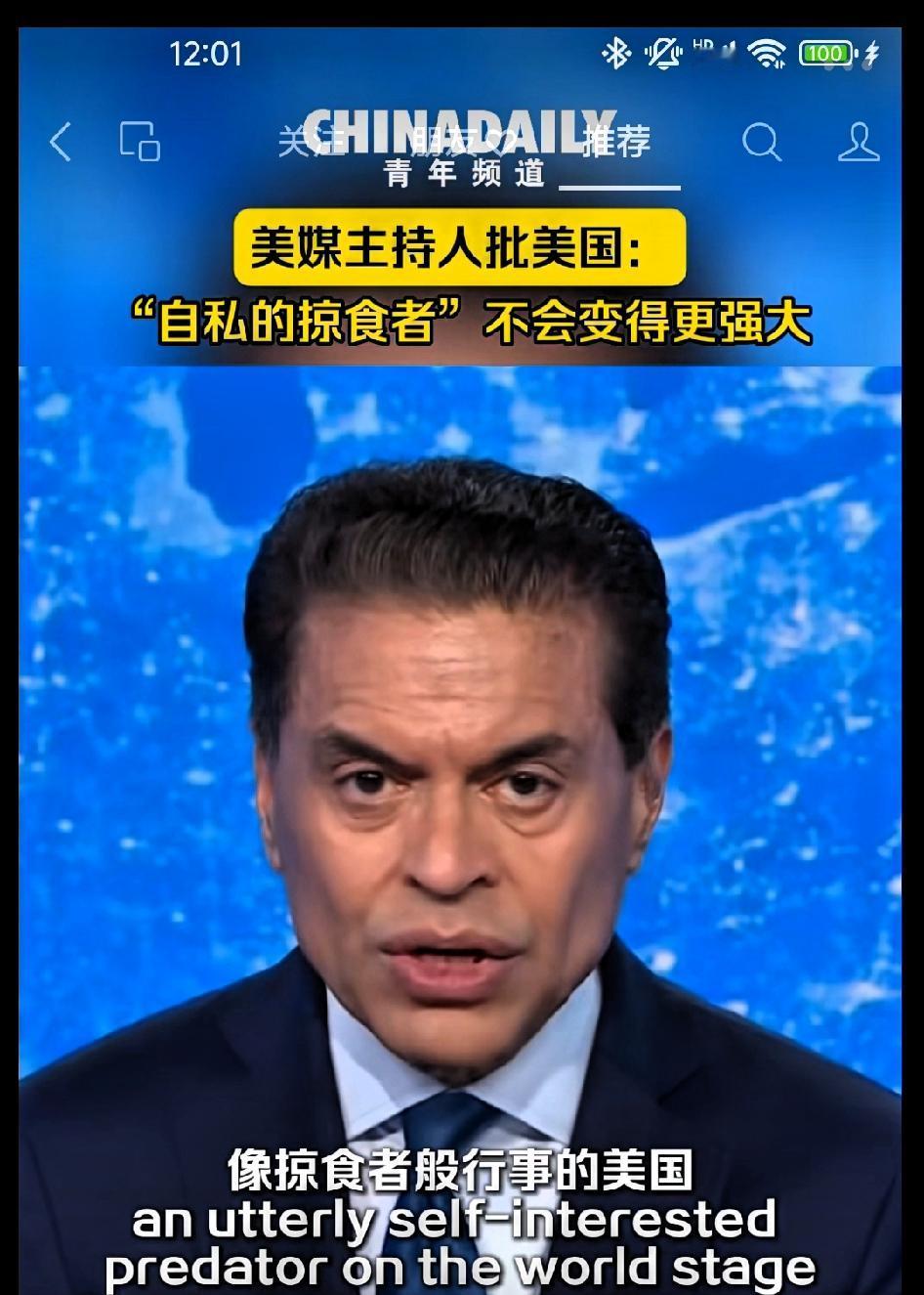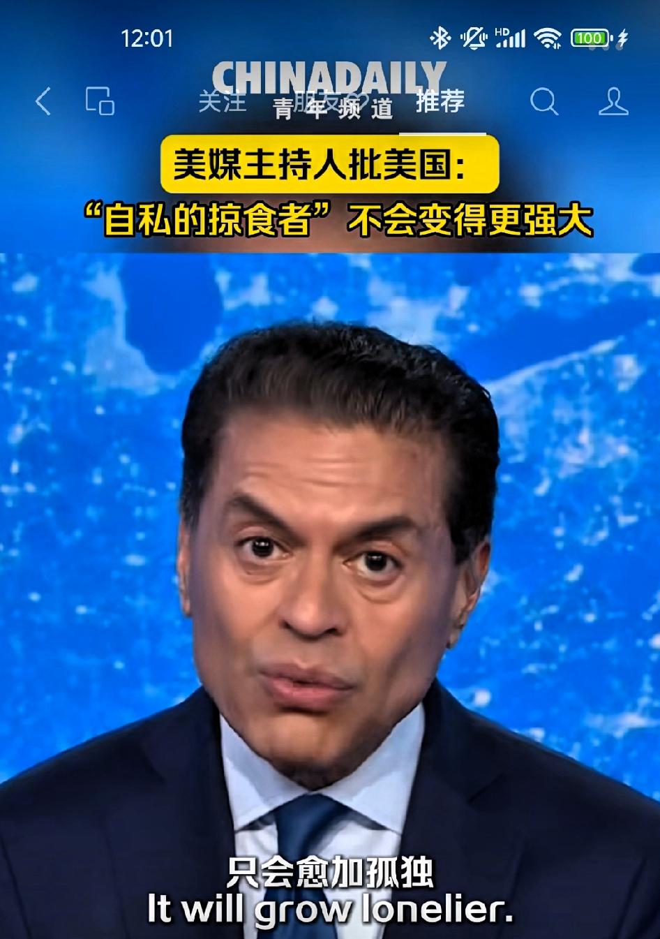 CNN主持人批美国:“自私的掠食者”不会变得更强大! 从长远来看,一个在国际舞台上完全以自我利益为先,像掠食者般行事的美国,并不会日益强大,只会愈加孤独。“盟友”将会观望且留后路,“伙伴”会寻求其它选择,“中立国家”将悄然疏远。