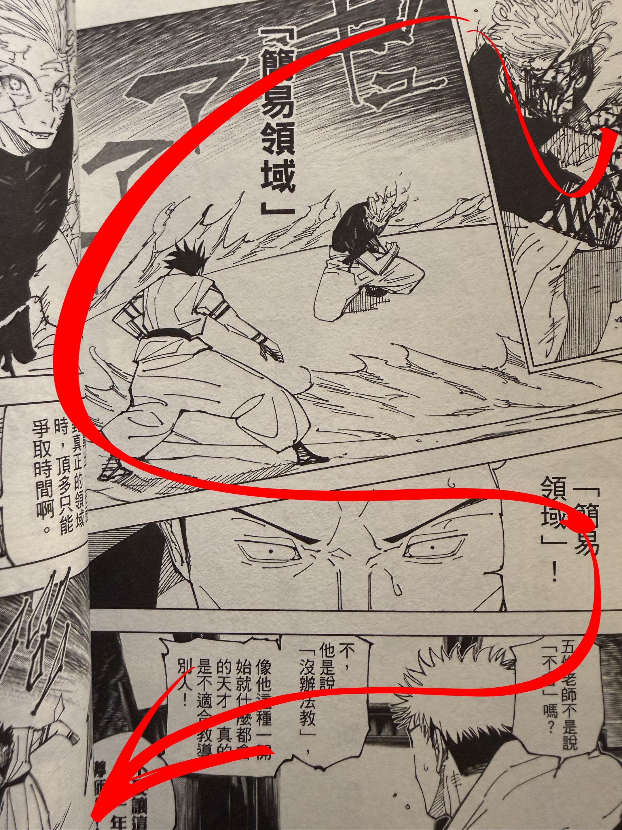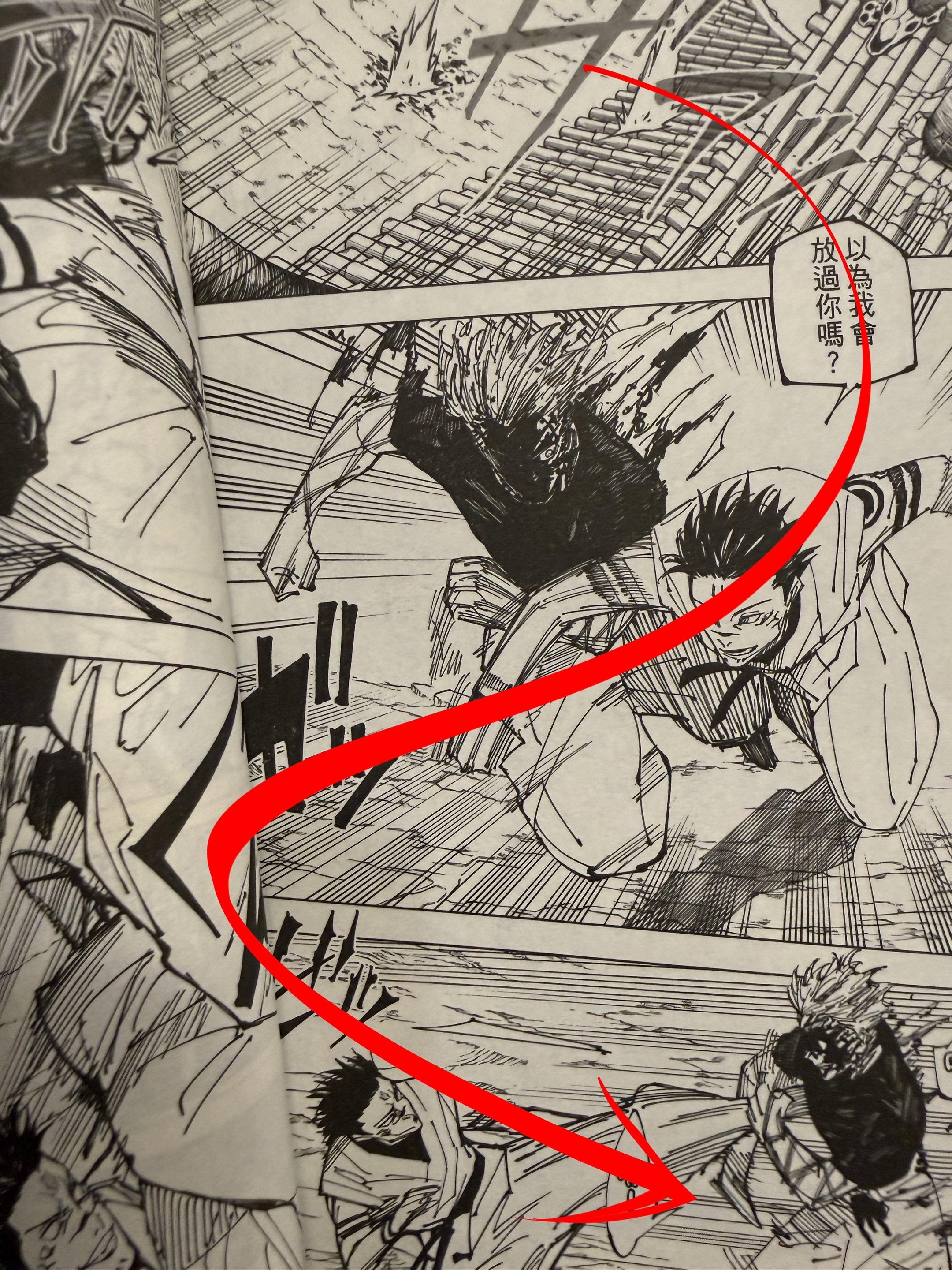 《咒术回战》漫画中的构图。这也是漫画分镜和动画分镜不能通用的重要原因