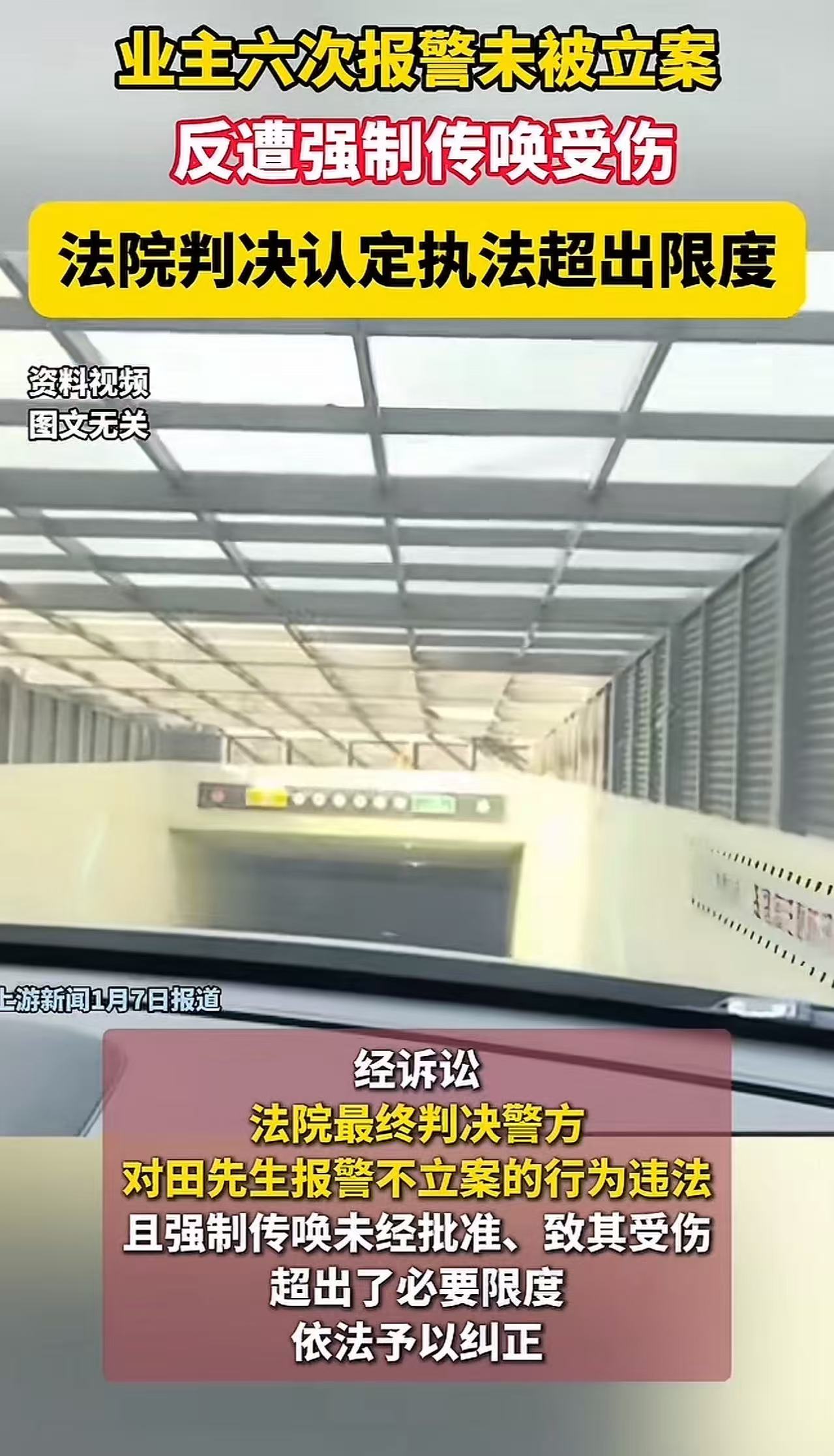 法院最终判决:警方对田先生6次报警“不予立案”的行为违法;使用辣椒喷雾、强制带离等措施明显超过必要限度,属于过度执法。