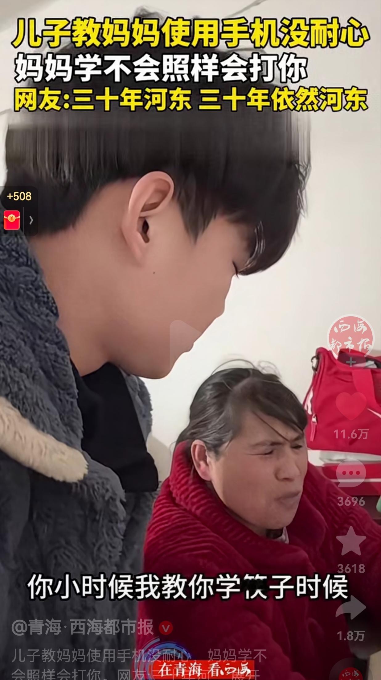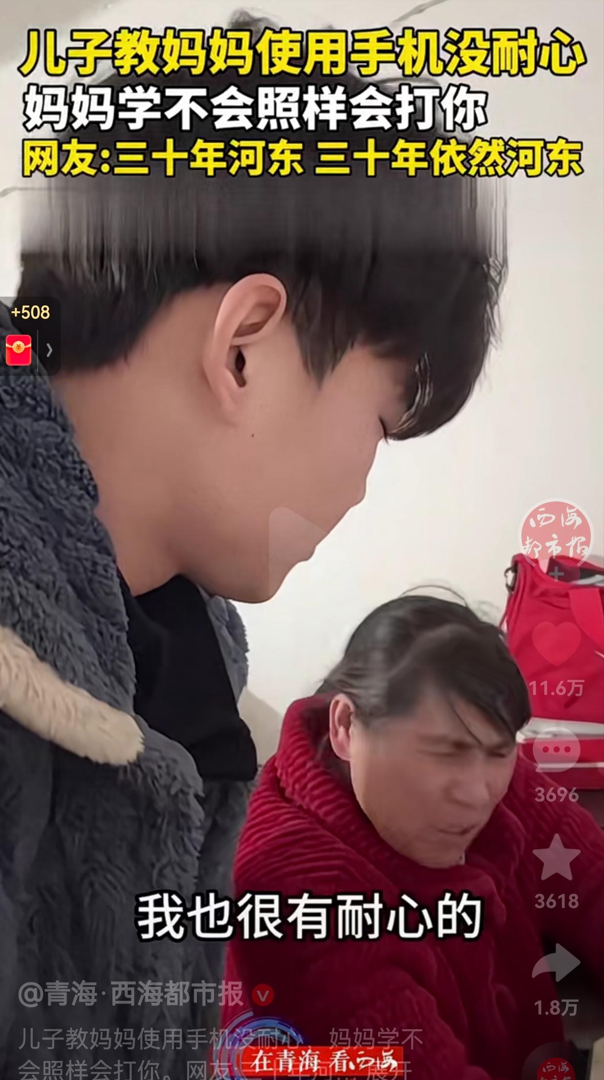 对妈妈有点耐心!妈妈不会使用手机,让儿子教自己如何使用手机。儿子教了好几遍,妈妈还是没有学会,于是,儿子就没有什么耐心了。 直接对妈妈说:“就按绿色按钮就行了!”语气表现得极为不耐烦。 妈妈见状轻声提醒:“你教我时候你有点耐心,慢慢地。”还忍不住旧事重提,对儿子说:“你小时候我教你学筷子的时候,我也很有耐心的。” 本以为儿子会有所反思,没想到他却嘴硬回了句:“那不一样”。 妈妈立刻笑着怼了回去:“怎么能不一样呢?” 儿子说:“我小时候要学不会你揍我,我又不能那么做。” 妈妈听到儿子这么说,气不打一处来,直接对儿子说:那怎么能不一样呢?你现在教不会我也得扇你啊。”说着说着,一巴掌就扇在了儿子的脸上。 网友看到后调侃说:“三十年河东三十年依旧河东,没有什么变化。” 还有的网友说:“妈妈的年纪大了,学什么都慢了,脑子也跟不上了,作为他的儿子,你真的应该有点耐心。” 看完母子俩的对话,心里真的五味杂陈,小时候,父母教我们走路、说话、用筷子,哪怕我们学了一遍又一遍,他们也总是耐心十足,从不会嫌我们笨。 可等我们长大了,面对父母学习新事物的笨拙,却常常失去耐心,忘了他们也曾这样温柔地对待过我们。 所以说,我们对待父母,一定要多点耐心,多点细心,把当年他们给我们的耐心,再一点点还给他们。 别让不耐烦冲淡了亲情,多给父母一点耐心,就像他们曾经对待我们那样。毕竟,他们陪我们长大,我们也该陪他们慢慢变老。这才是为人子女应该有的态度。