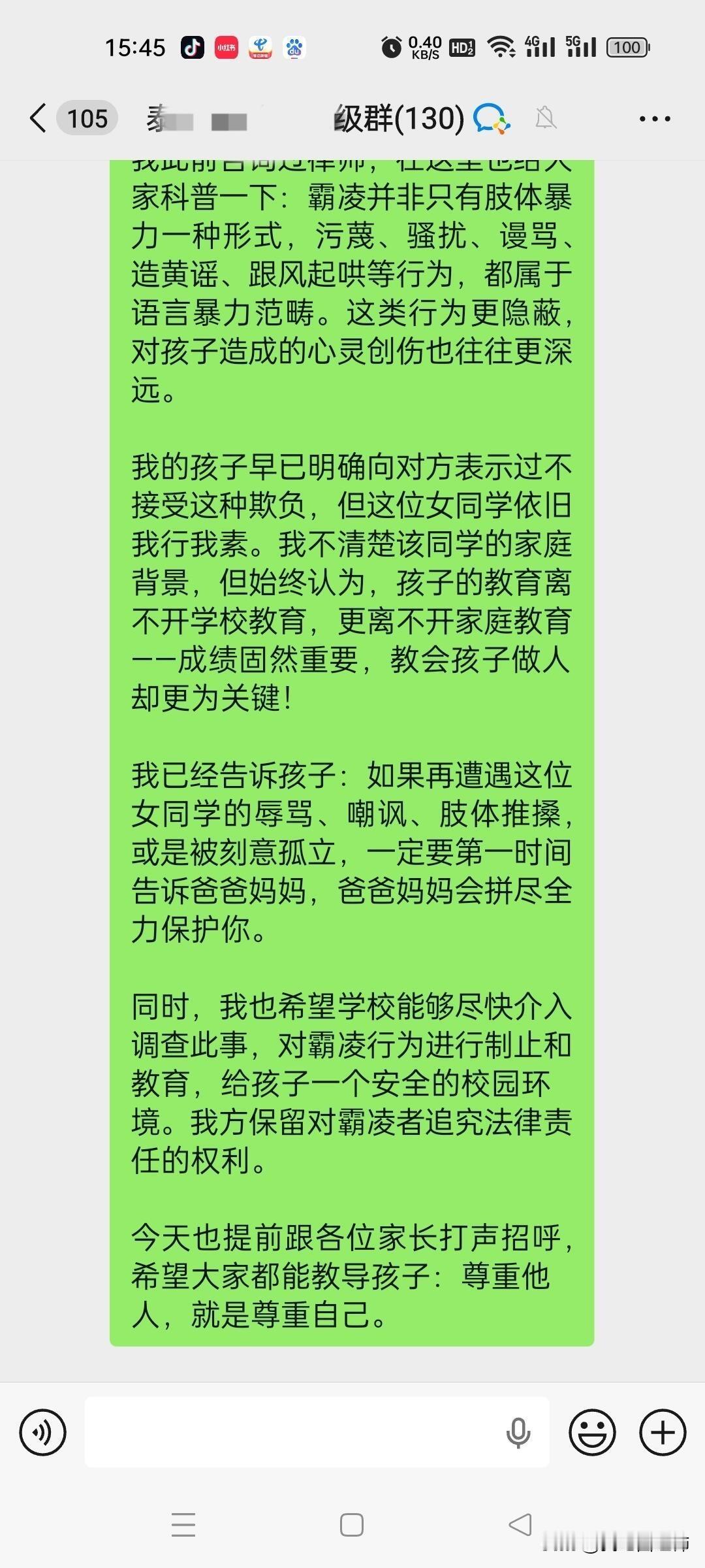 校园语言霸凌,比肢体暴力更伤人 前两天妹妹送姐姐一个小挂件,帮姐姐挂到书包上了,姐姐出乎意料的来一句“我还是不带吧,带到学校×××会抢的”我心头一震…… 昨天大宝买了一支漂亮的笔,她自言自语道:“这么漂亮的笔,我就在家里用吧,带到学校×××会抢的。”我震惊了,心里很不是滋味,女儿被霸凌者欺负成啥样了?我决定为女儿出头!!! 我的几个小感悟: 1.校园霸凌的源头,归根结底往往是学校和老师的态度问题。这个班主任不喜欢我们家孩子,现在的孩子都那么聪明。肯定很轻易就能捕捉到这个信息,所以才敢肆无忌惮的欺负他。 2.这次决定站出来奋力抵抗,所有的可预知的,不可预知的后果,我都做好了万全的心理准备。比如最后可能孩子没办法在这个学校待下去。 3.很自责,没有及时捕捉到孩子的求助,让孩子受了这么多的委屈,以后会重新把孩子的需求和感受放在第一位。