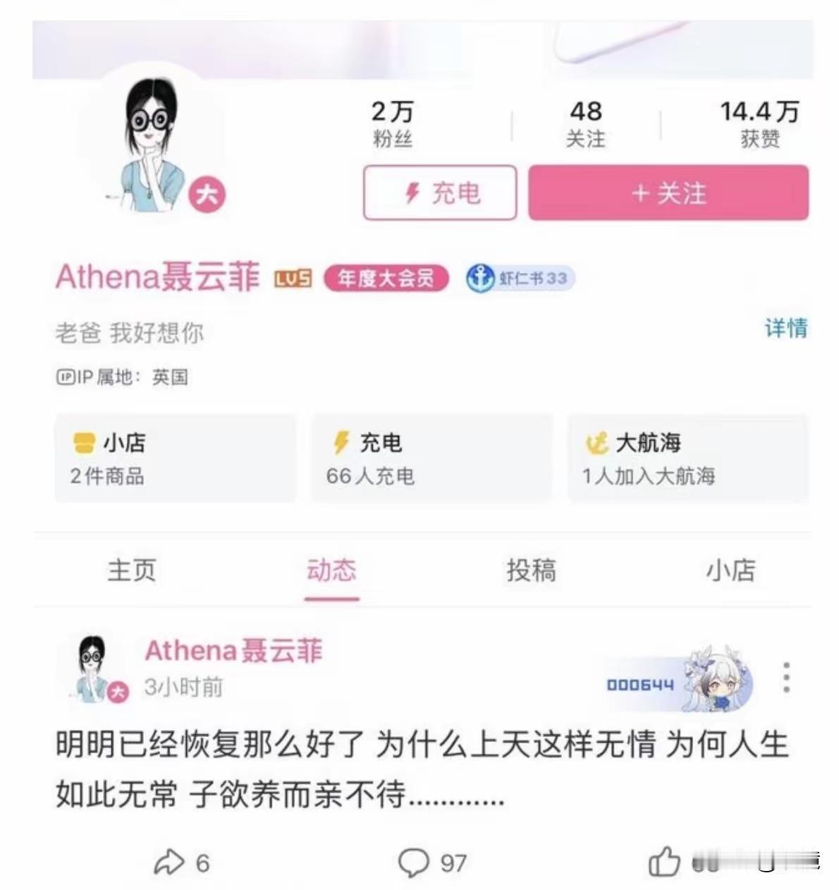 聂卫平的女儿聂云菲漂亮大气,完美地继承了爸爸妈妈的优点。聂云菲出生于2004年,聂卫平52岁得此可爱的小棉袄,那是个高兴,已有两个儿子的他,终于儿女双全,棋圣对这个可爱的小公主那是百般呵护,视若掌上明珠。她今年2 1岁,比大哥小23岁,比二哥小12岁。 聂云菲是妈妈兰莉娅剖腹产生下的,她生下时七斤二两,聂卫平给她取名为“聂云菲”。 2019年,聂云菲在博思杯2019世界人工智能围棋大赛上为人工智能“棋精灵”充当人肉臂。 聂云菲非常懂事孝顺,2022年8月17日,聂云菲和其父亲的徒弟常昊等为棋圣聂卫平庆祝七十大寿。 如今疼爱呵护她的父亲聂卫平离她而去,她特别伤心💔,她叫爸爸再也没人回答了,子欲养而亲不在,她脑海里总是浮现与爸爸在一起的幸福时光,她把个人社交账号简介改成“老爸,我好想你”。愿她带着爸爸的爱快乐幸福成长,这也是爸爸的愿望。 象棋宗师聂卫平 聂云菲 象棋王聂卫平