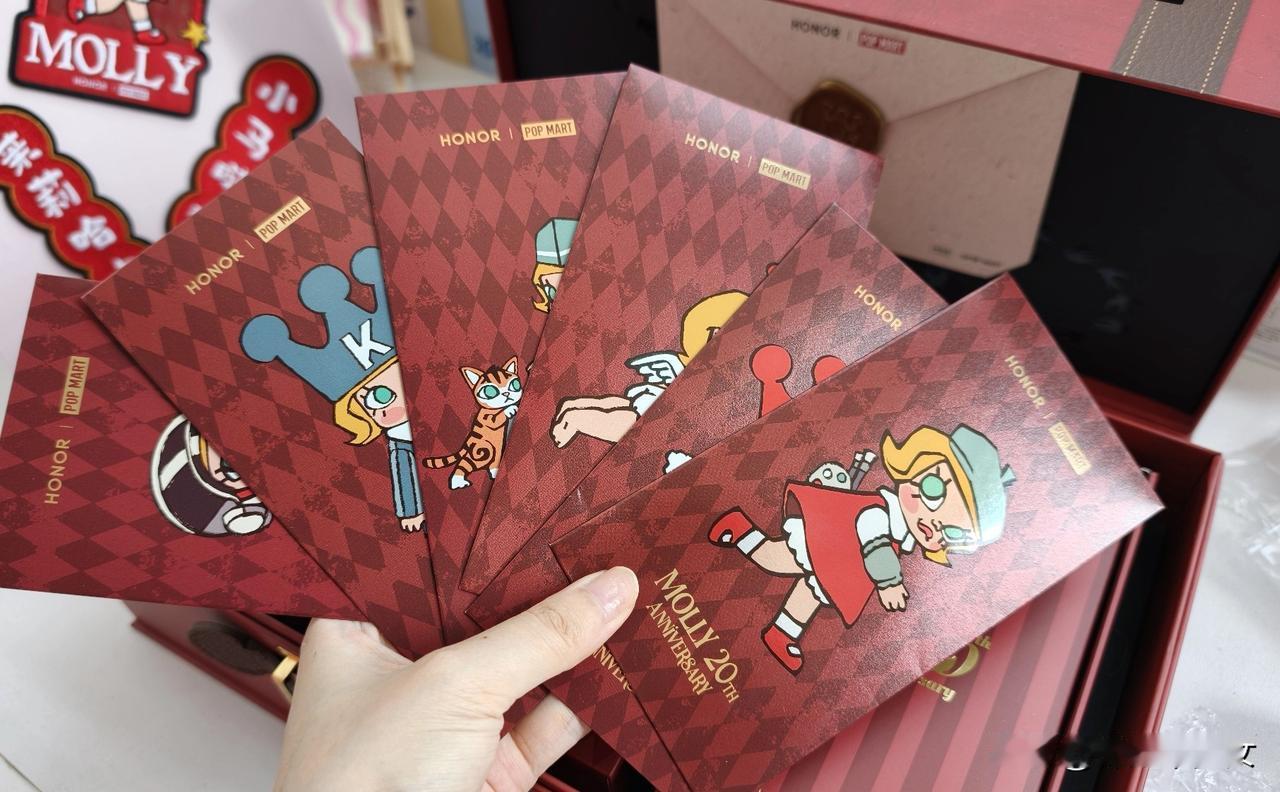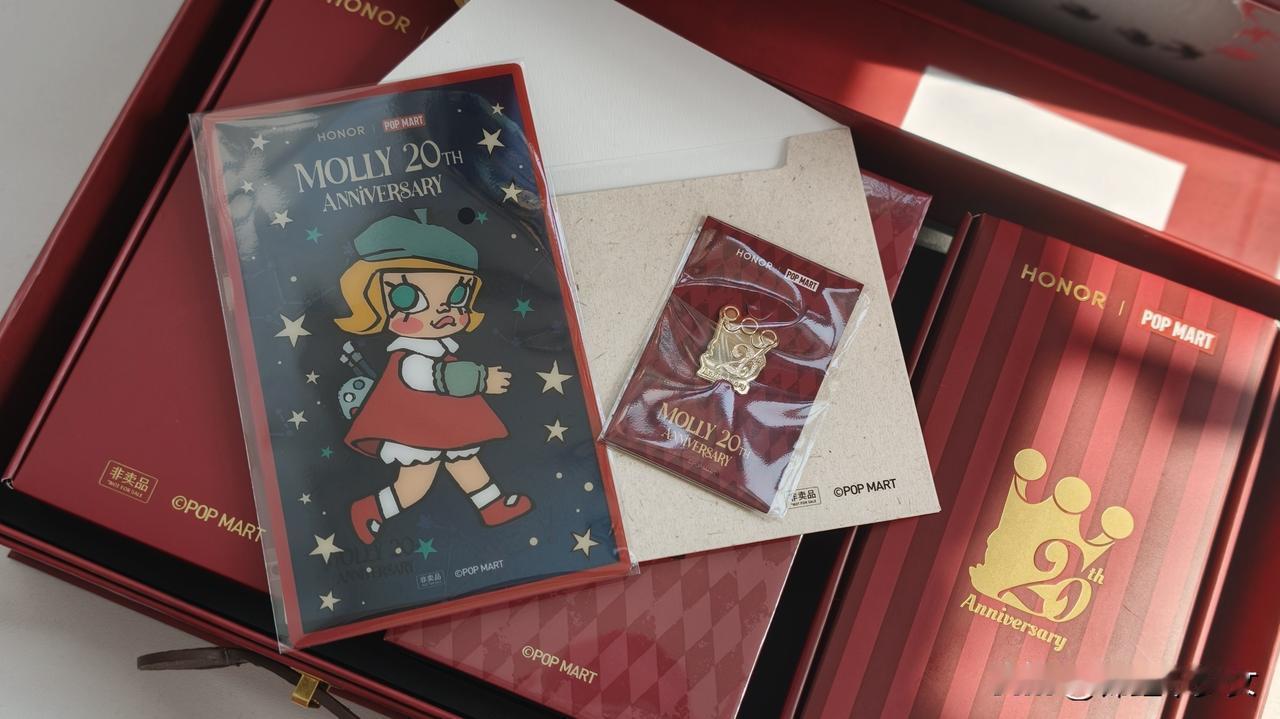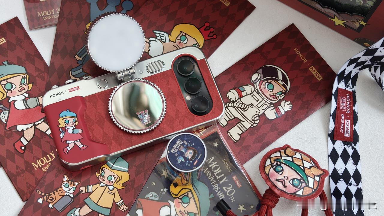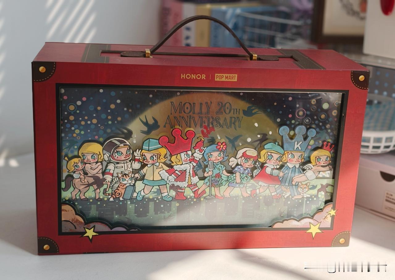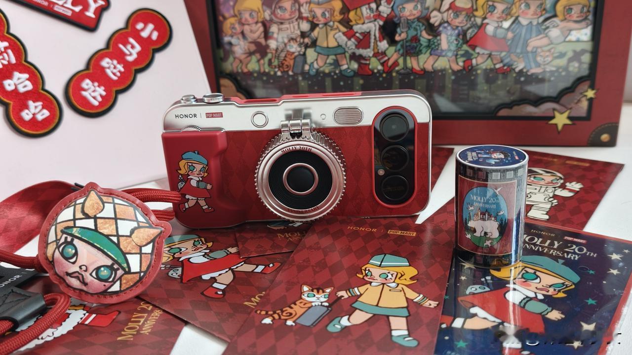收到了荣耀500 Pro MOLLY 20 周年限定礼盒,一整个舍不得打开,想直接收藏的程度!行李箱式包装仪式感拉满,定制手机背面有镭射MOLLY形象,手机的系统、相机水印、充电等也都是MOLLY元素。 礼盒里面包括相机造型手机壳、挂绳、胶片贴纸、红包、冰箱贴等周边,磁吸的补光灯还带一个小镜子,太懂我们爱自拍的女孩想要什么了~