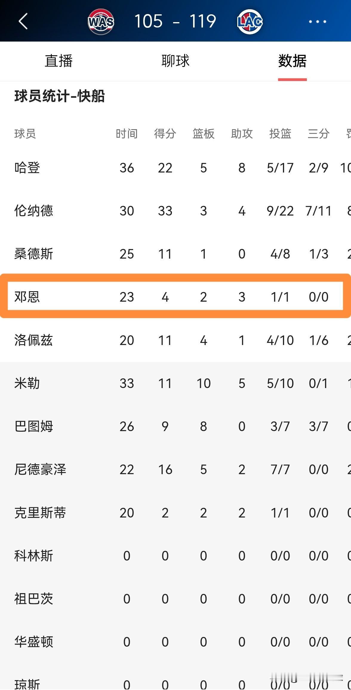 快船大将邓恩真是太有自知之明了!在今天快船主场以119:105击败奇才的比赛中,